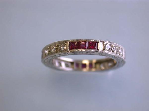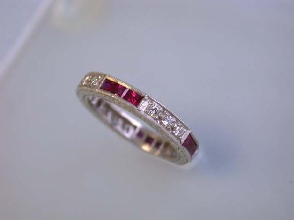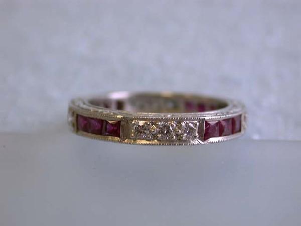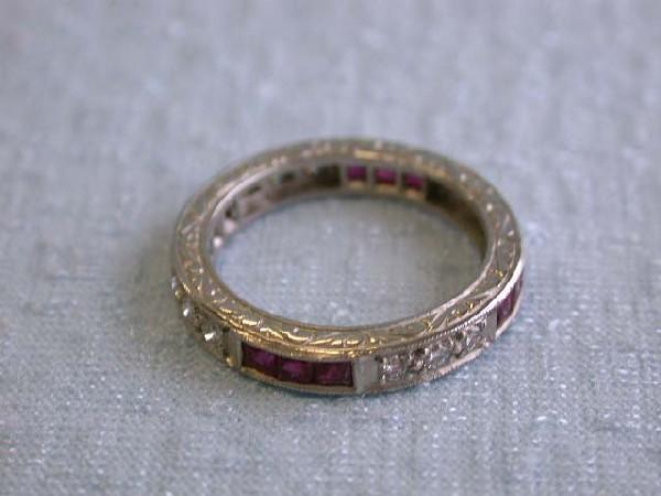Platinum Ring w/ Diamonds & Ruby. This is platinum ring with 0.40 carat diamonds w/ G color and VS clarity and 0.60 carat Ruby. The size of this is 6.25 and the width is approximately 3.4 mm and weighs 5.3 grams.