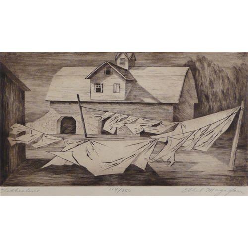 Ethal Magafan (1916-1993), Etching, "Clothesline", 104/250, Signed lower right.