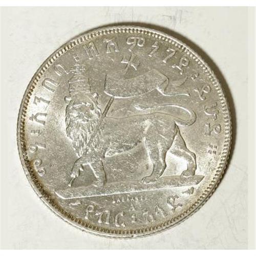 <B>Menelik II 1/2 Talari (Birr) EE1889,</B></I> KM4, lustrous, typical tiny surface marks, scarce.<BR><BR><b>Shipping:</b> Coins & Currency (<a target="_blank" href="http://www.heritageauctions.com/common/shipping.php">view shipping information</a>)
