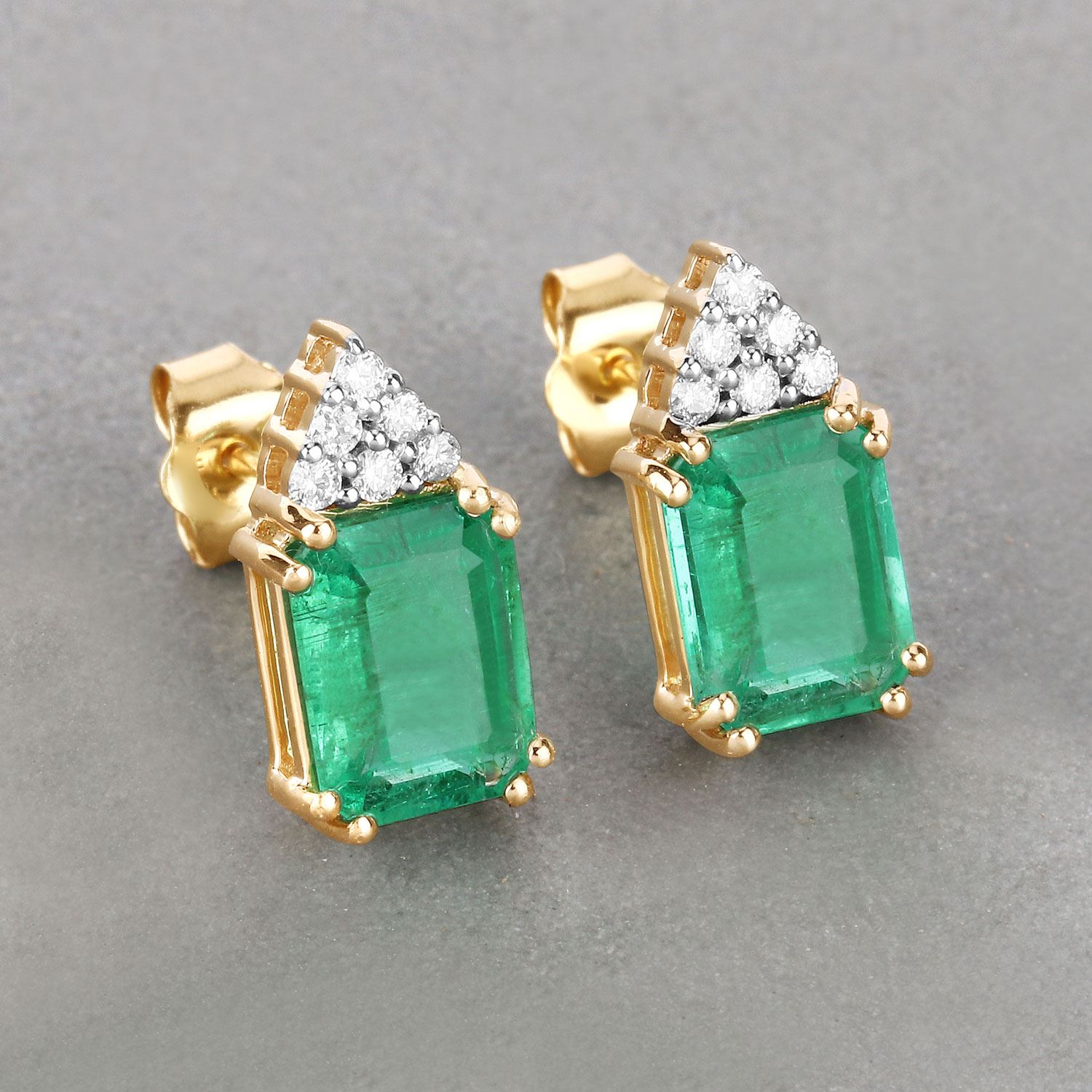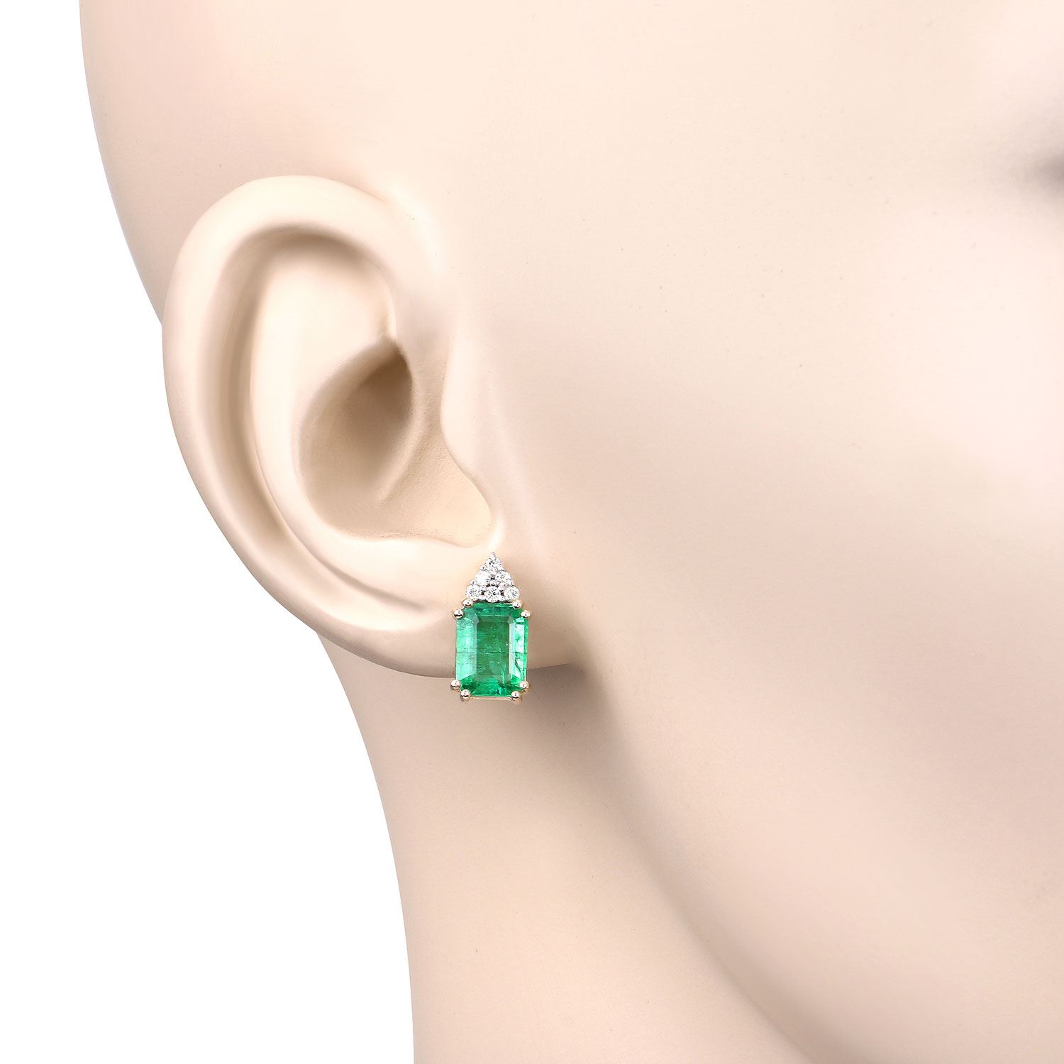 The cool minty green color of the 2.75 carats total weight of octagonal-cut, genuine Ethiopian emeralds is like a blast of fresh air on a hot, summer day!& nbsp; The bright green emeralds are topped with an icy frosting of .12 carats total weight, round, brilliant-cut, H-I color, I1 clarity, genuine, Earth-mined, diamonds.& nbsp; Each emerald is 8mm x 6mm and the earrings attach to the earlobe with posts and friction backs.& nbsp; Admin: Q5743/9-