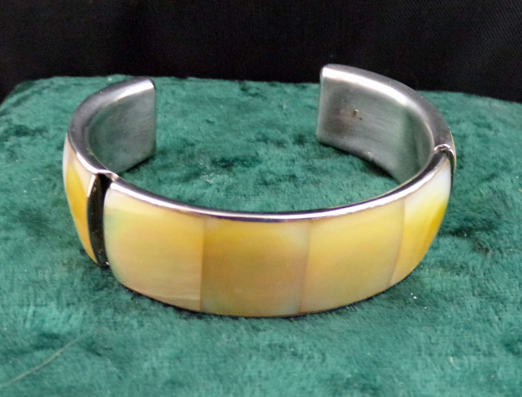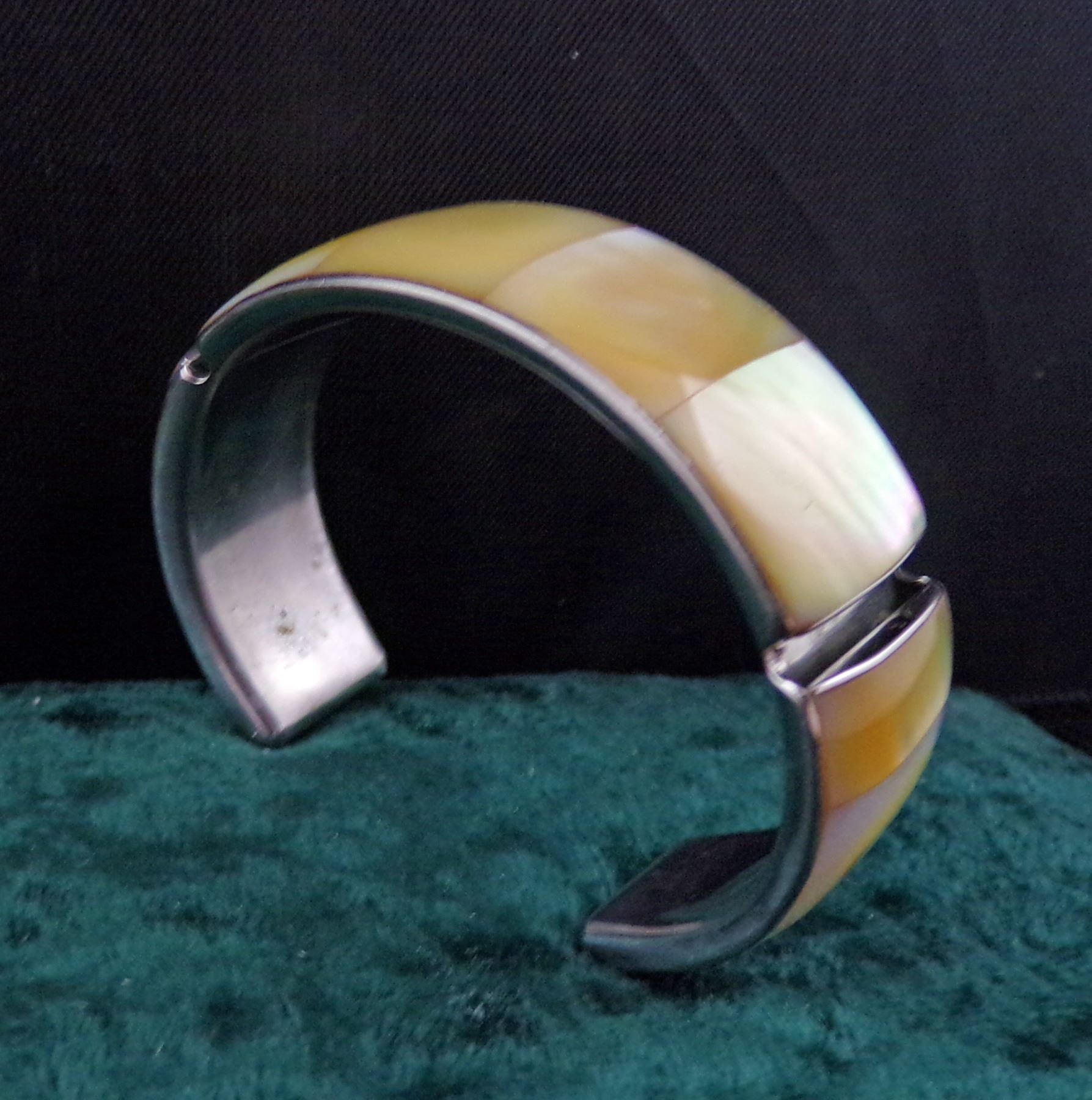 Ethnic Mother of Pearl Shell Cuff Bracelet, inside measures 5.5'' x .75''W