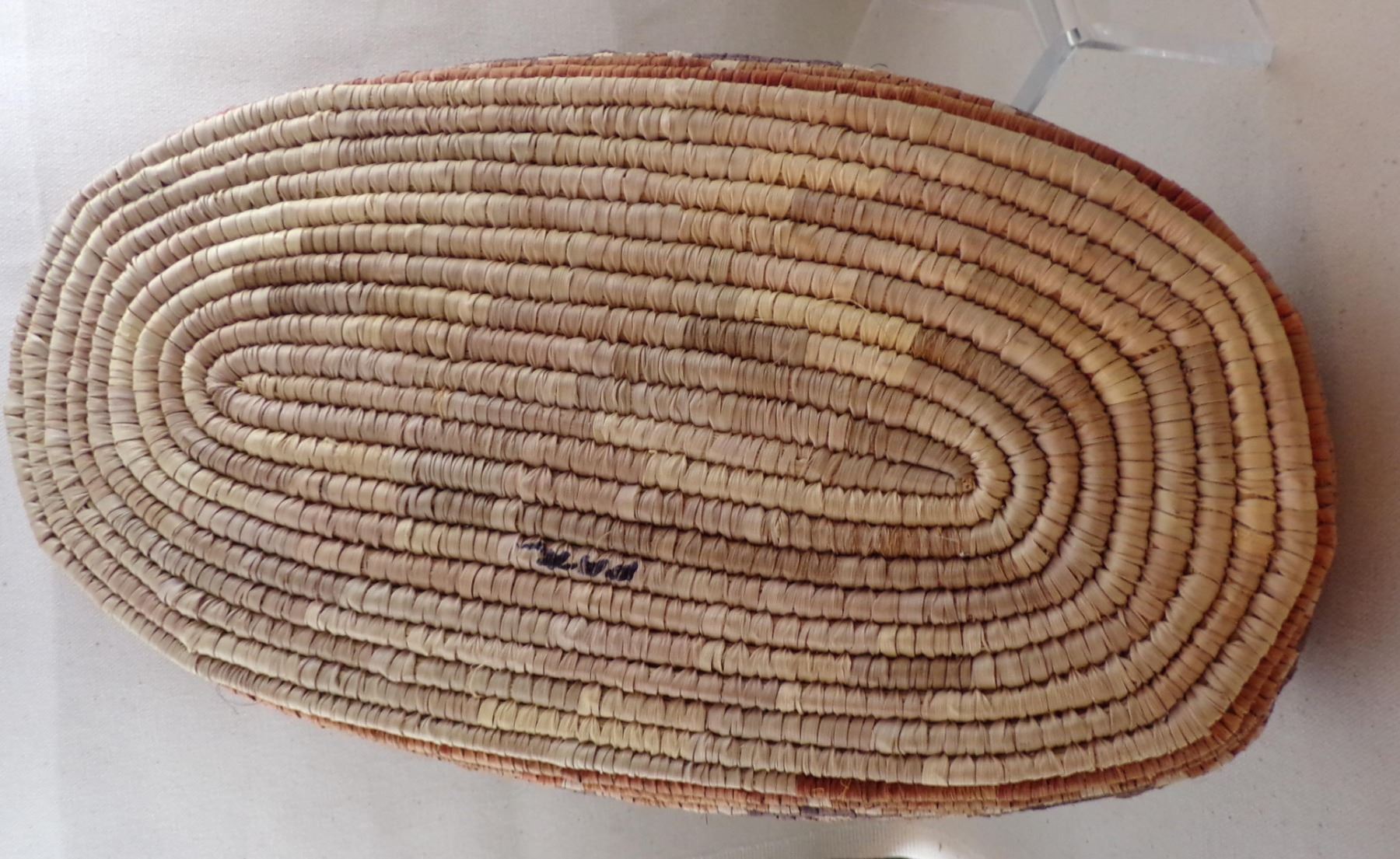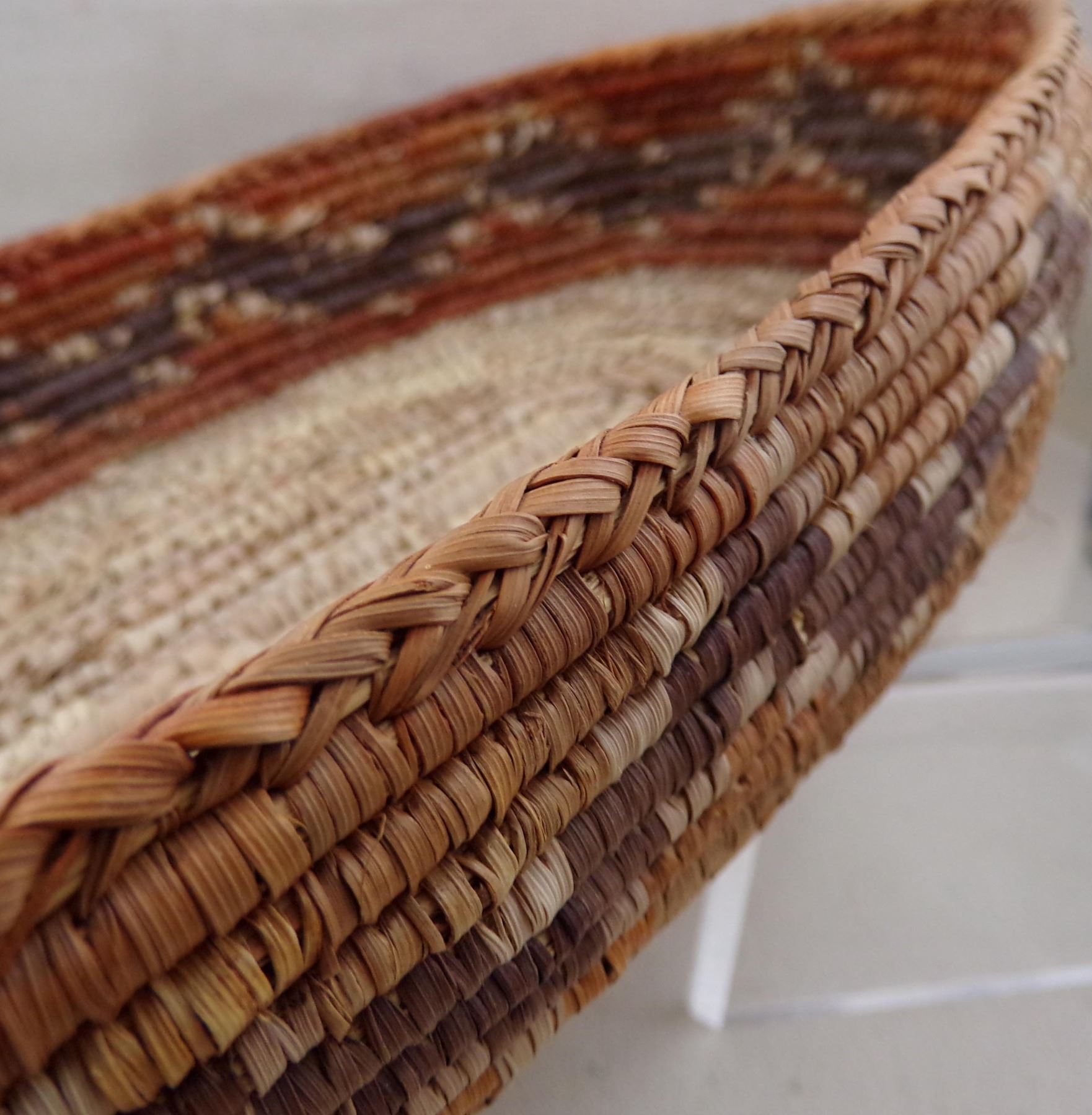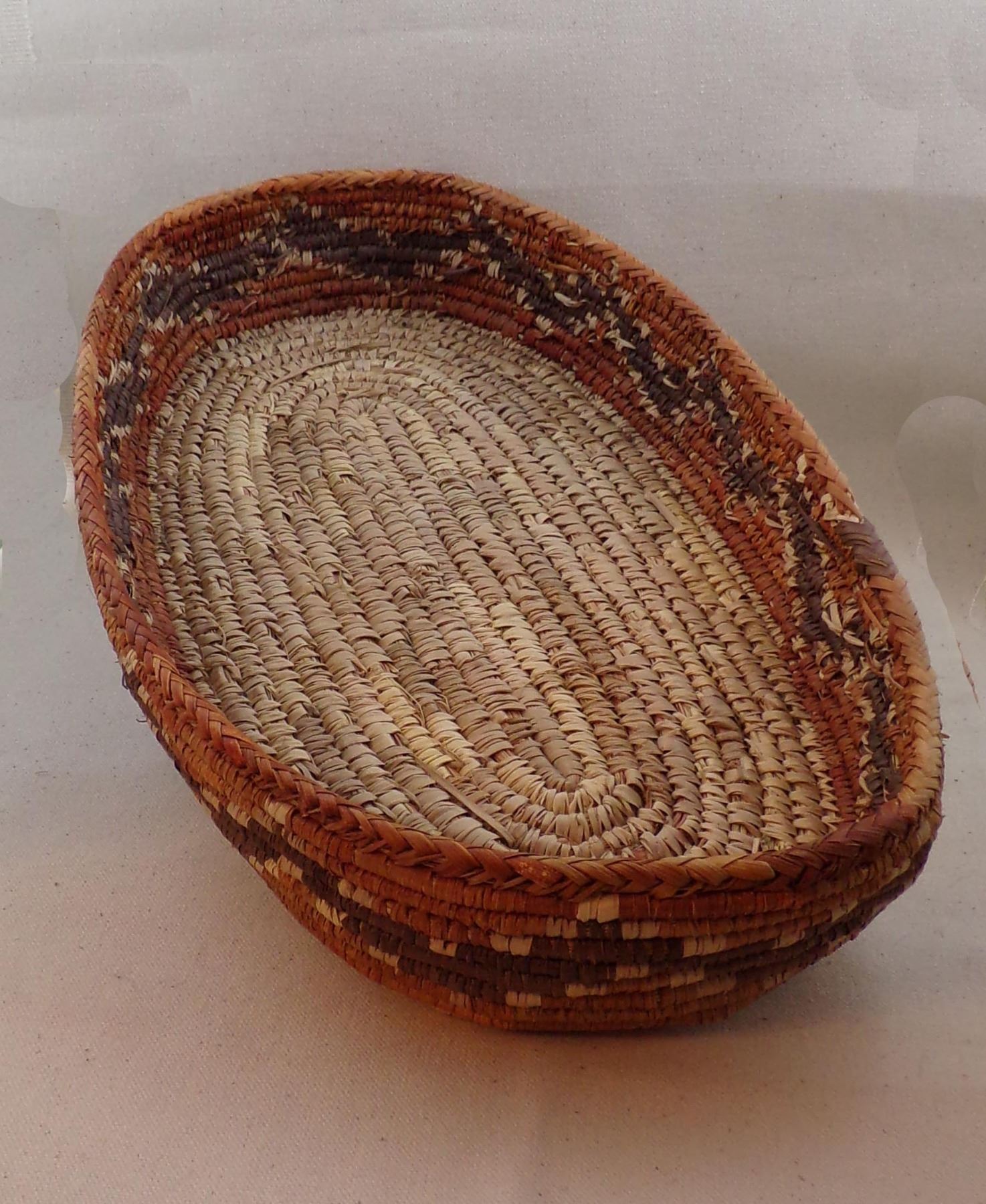 Ethnic Multi-Toned Oval Basket, measures 8"W x 14.5"L x 2.5"H