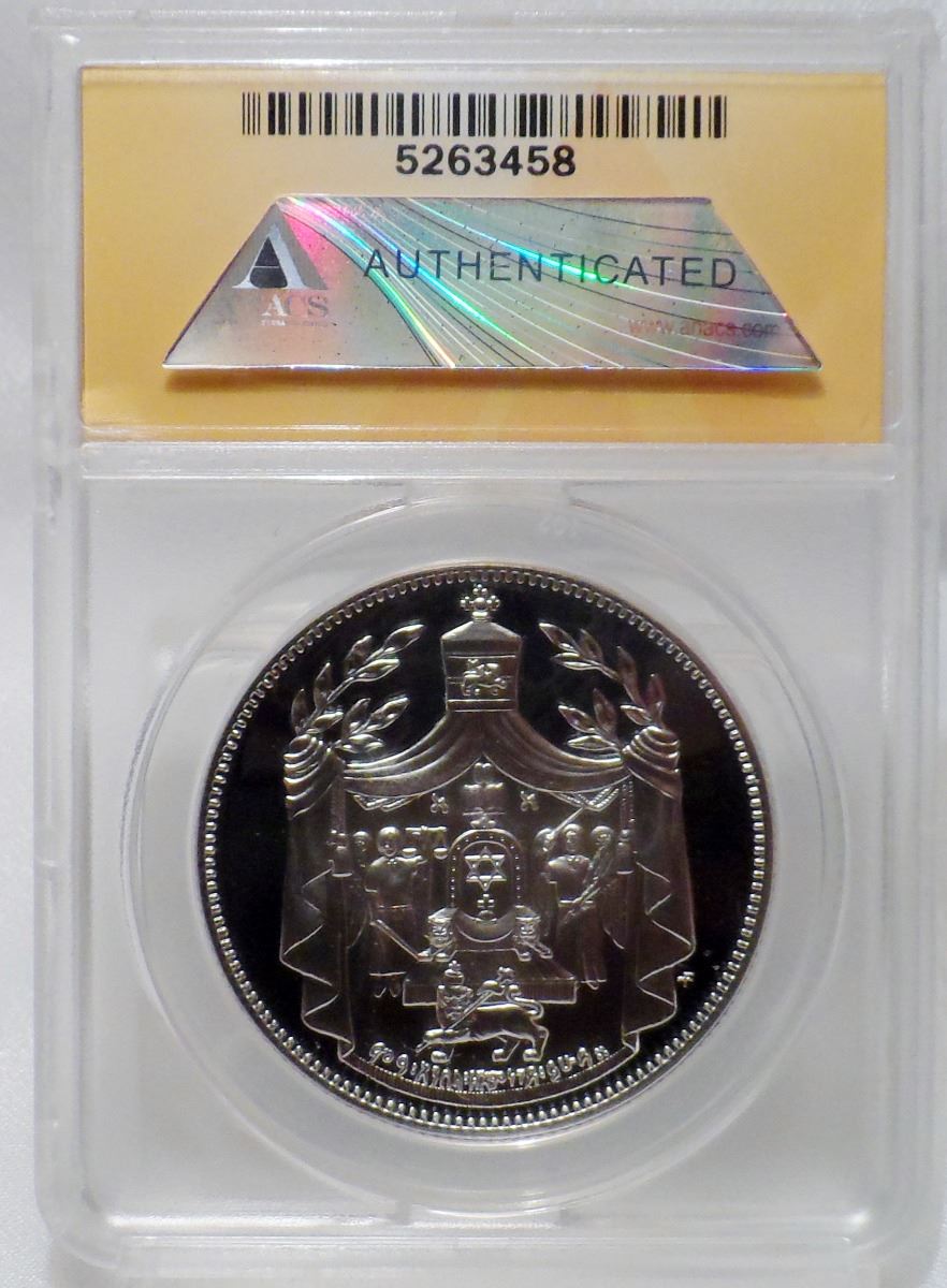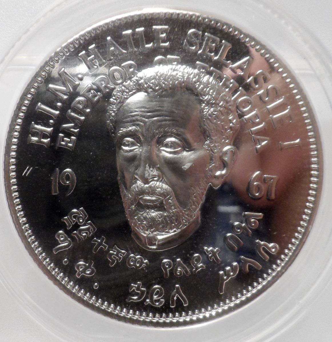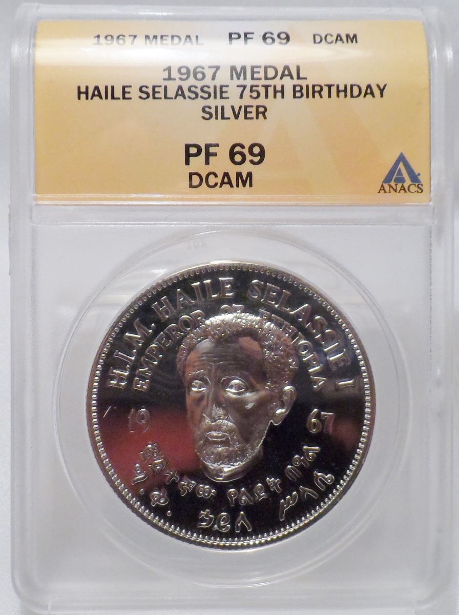 ANACS Slabbed PROOF 69 DCAM 1967 Rare Ethopian Pavilion EXPP 1967 Haile Selassie 75th Birthday 38.8mm 116 reeds RARE The Franklin Mint, Only 600 Made