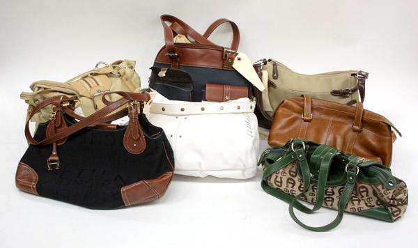 (lot of 7) Etienne Aigner designer leather and canvas purses in various styles and colors