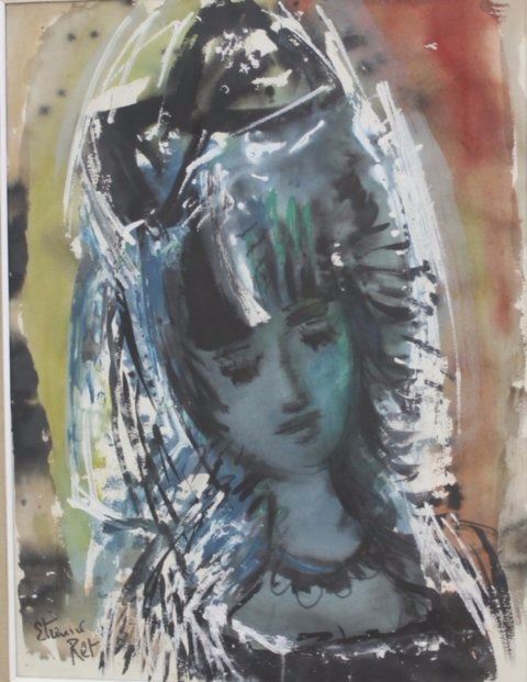 Watercolor. Signed lower left. Etienne Ret (1900-1996). Approx. 24 1/2" H x 19 1/2" W sight, 30" H x 24" W framed.