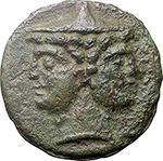 Etruria. Volaterrae. As, circa 225-215 BC. Obv. Head of Culsans, wearing pointed cap. Rev. VELATHRI around club and mark of value I. Haeb. pl. 83,7. HN (Italy) 109 b. TV 86. AE. g. 148.20 RR. About EF. Very rare. Well cast in hight relief. Dark green patina. Mondo Greco. Etruria.Volaterrae. Haeb. pl. 83,7. HN (Italy) 109 b. TV 86. AE. g. 148.20 RR.