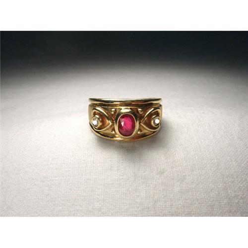 <tr><td>Title:Etruscan 14K YG Gold Ruby Diamond Heart Band</td></tr>