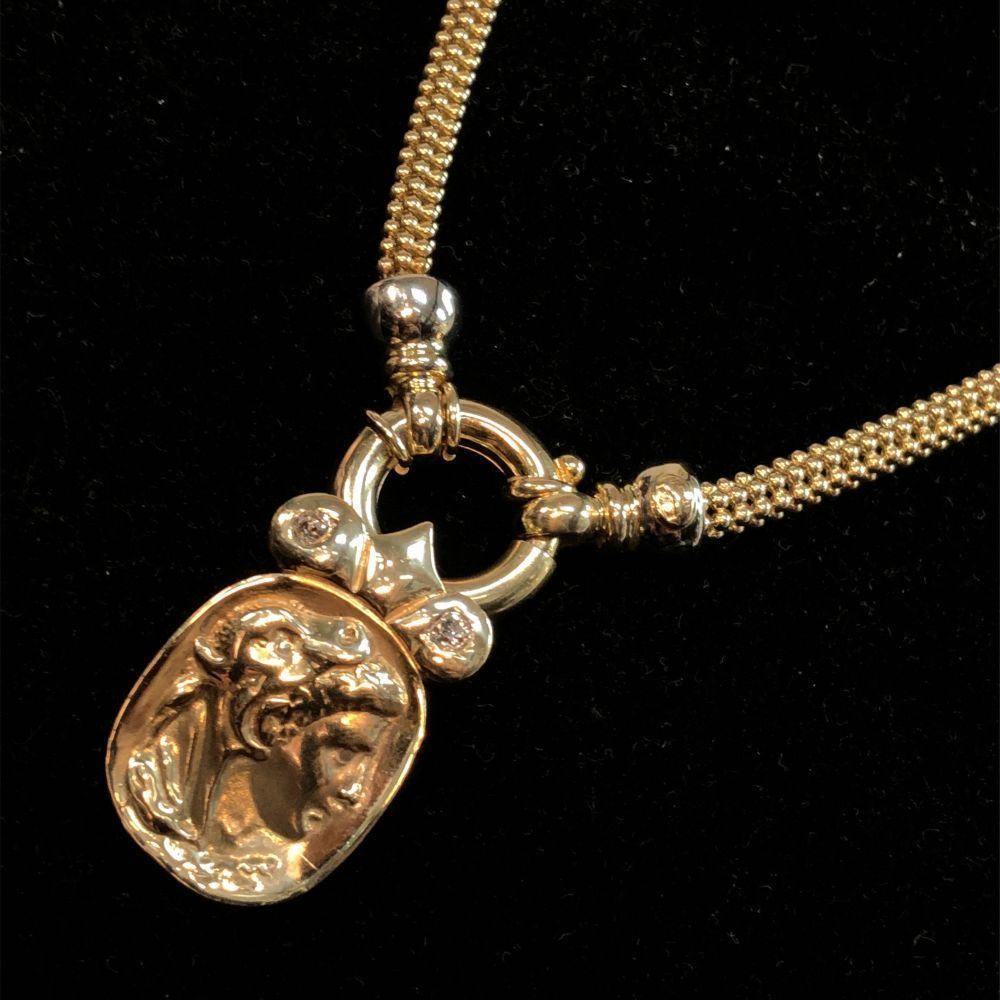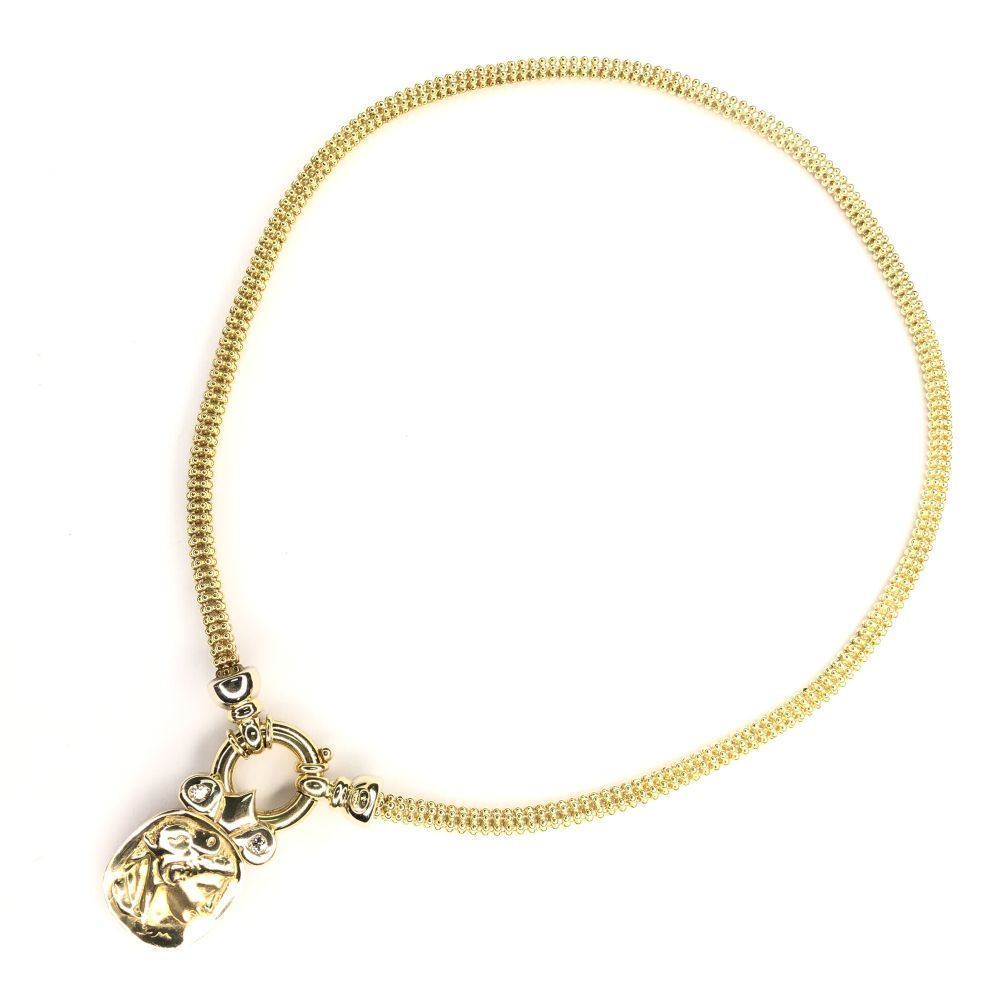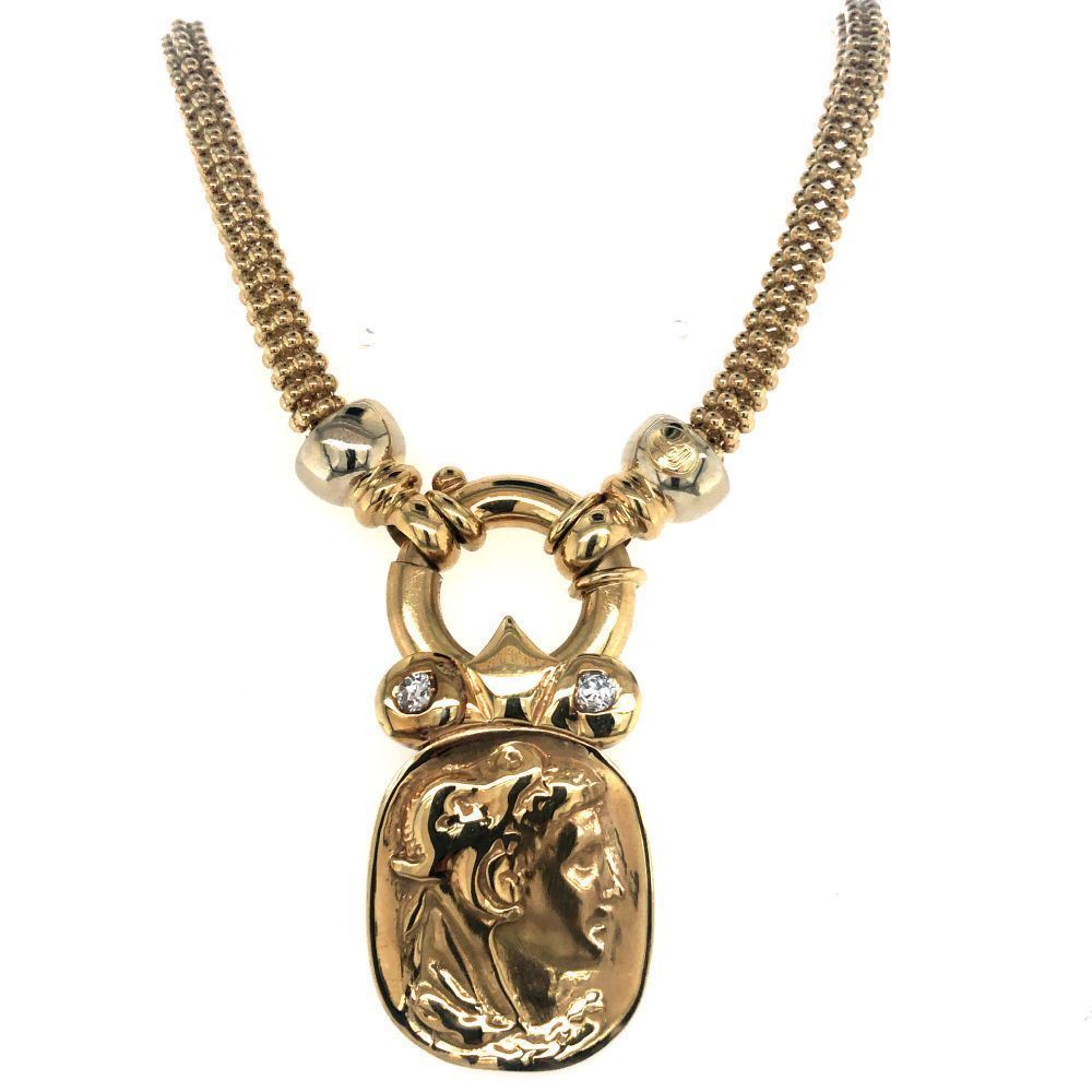 TITLE DESCRIPTION: Etruscan Revival Repousse' Gold & amp; Diamond Necklace