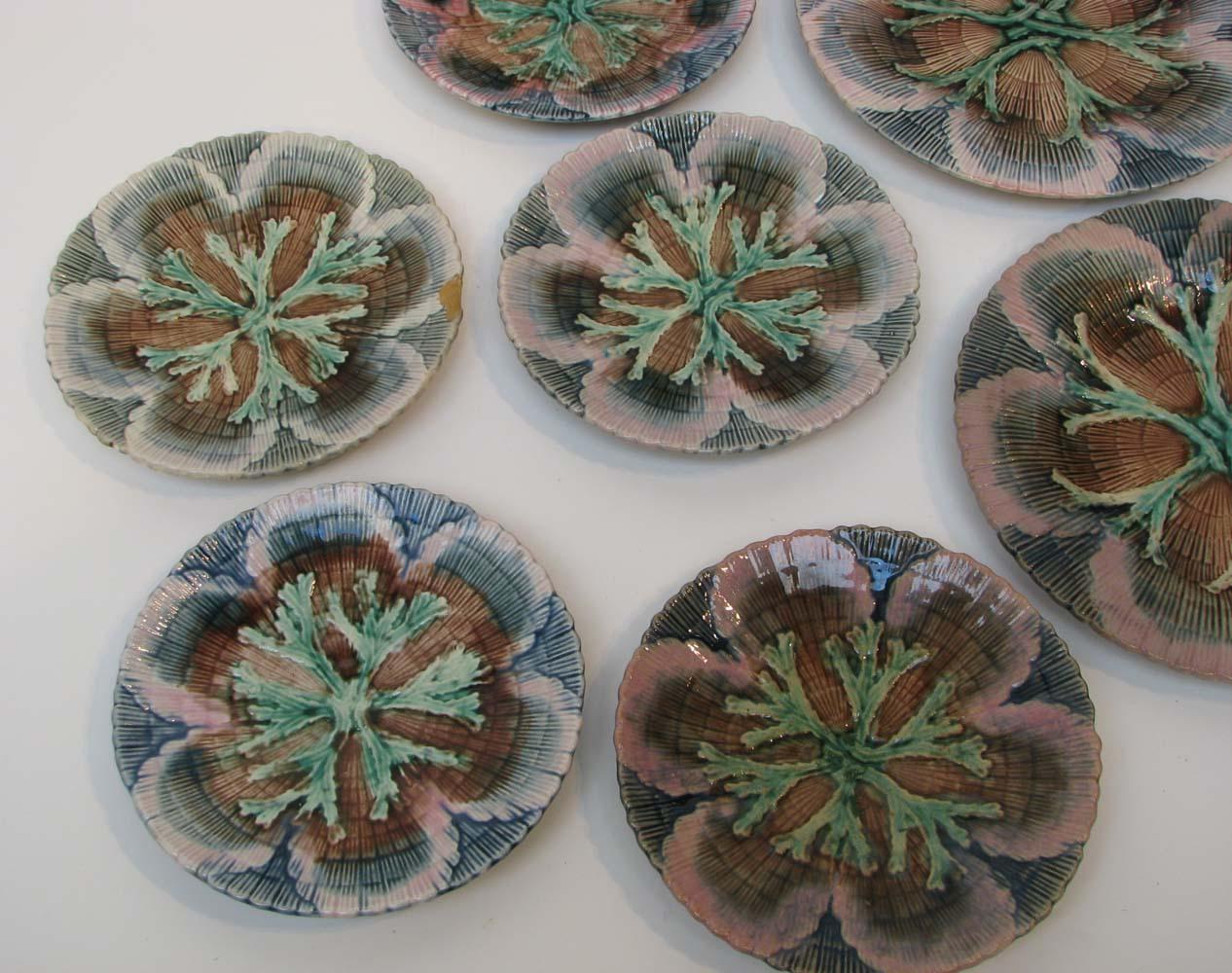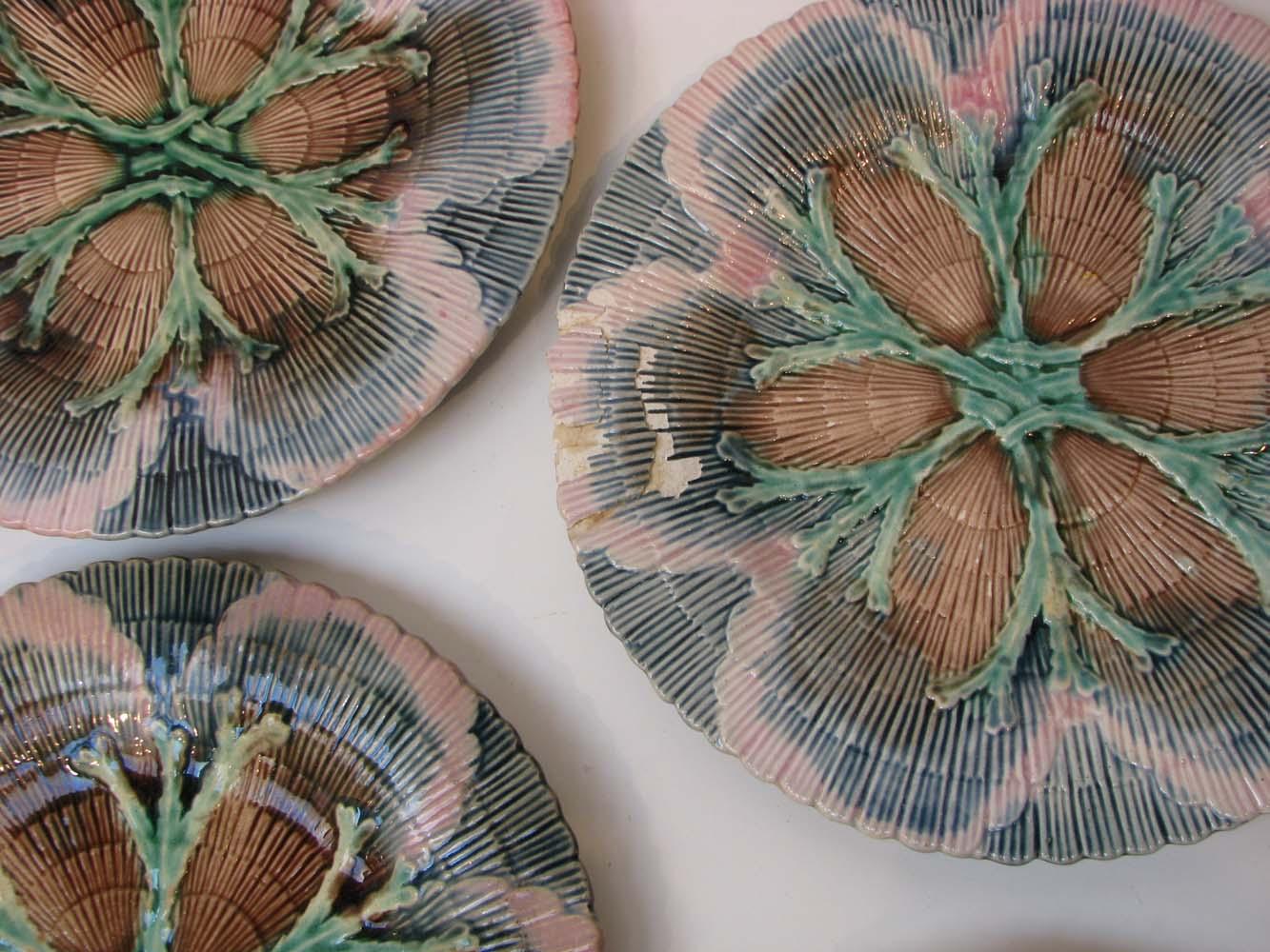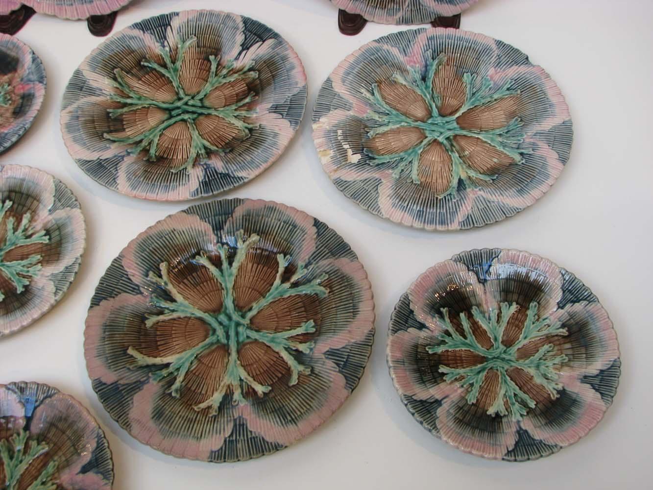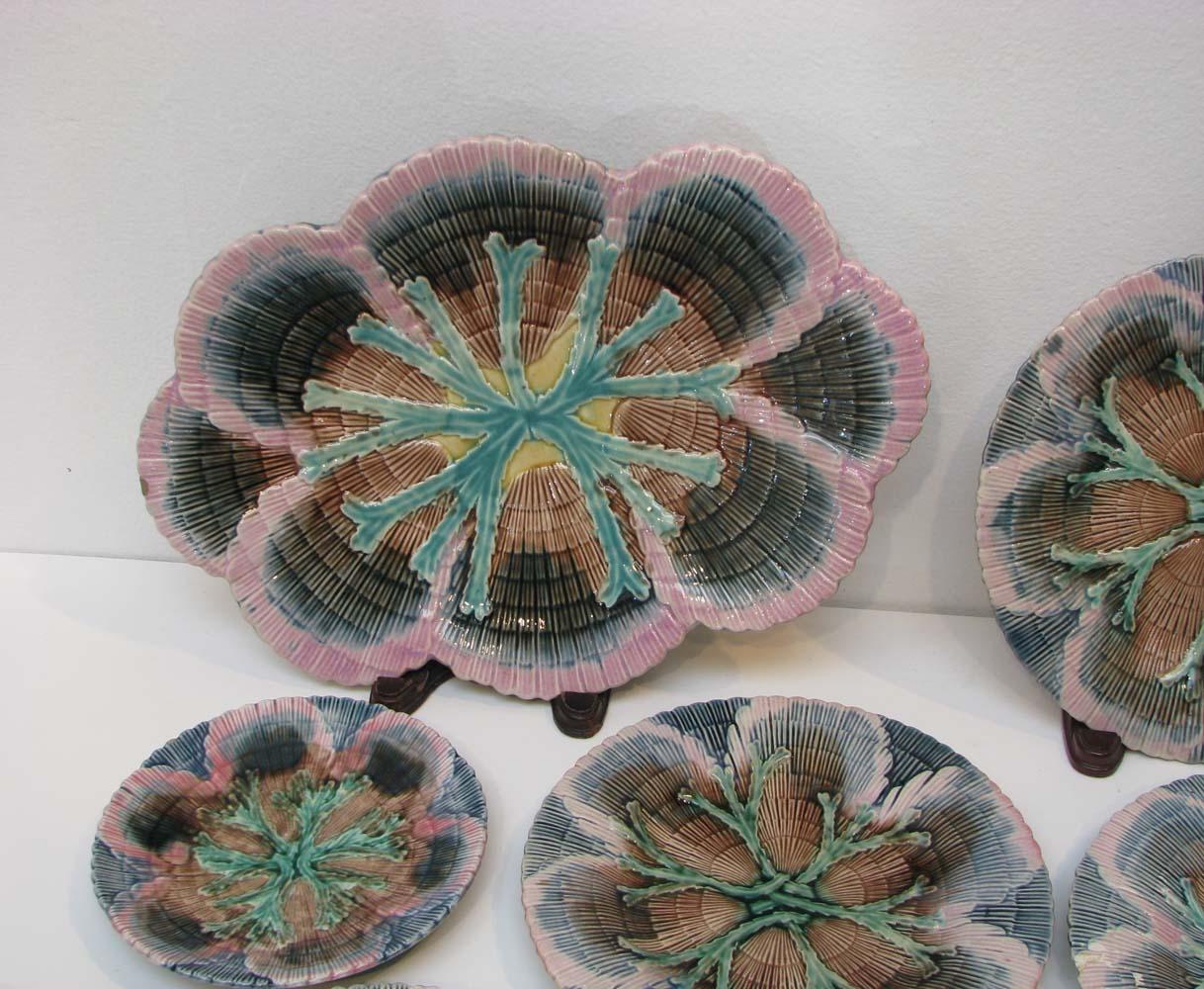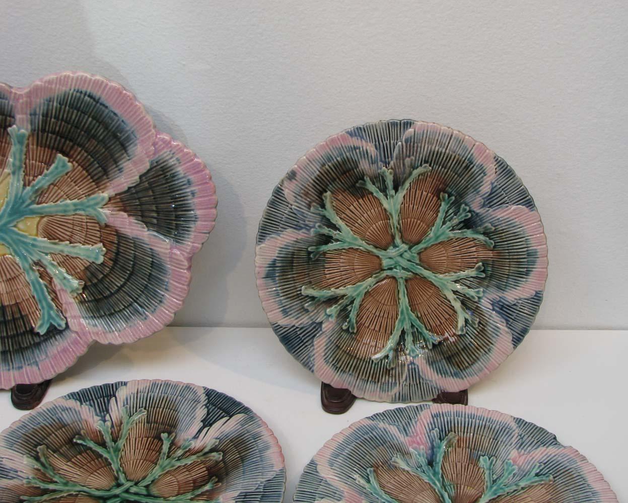 Etruscan Shell and Seaweed Majolica Platter, 4 large plates and 6 small plates