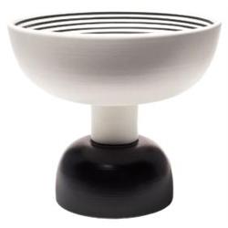 Ettore Sottsass Jr. ceramic vase, from the Hollywood series, later production of a 1958 design, manufactured by Bitossi, of black base and white top with black circular lines to interior, signed, 9”h