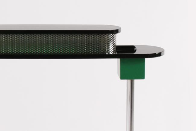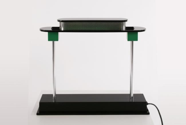 Ettore Sottas "Pausania" table lamp, Italy 1982 Studio Artemide, Dimensions:17h x 19w x 4.5d, black and green plastic, Literature: Albrecht Bangert: Italianisches Möbeldesign, Klassiker von 1945 bis Heute, Editions Bangert, Munich 1987, see similar modell P.167, Giuliana Gramigna