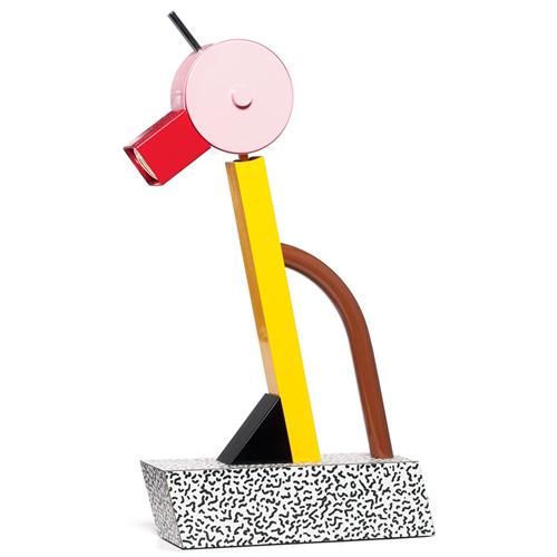 Ettore Sottsass Tahiti lamp, by Memphis, made in Italy,1981, enameled metal and laminate over wood, light source adjusts via chrome rod to top,15in.w x 4in.d x 27in.h, excellent condition