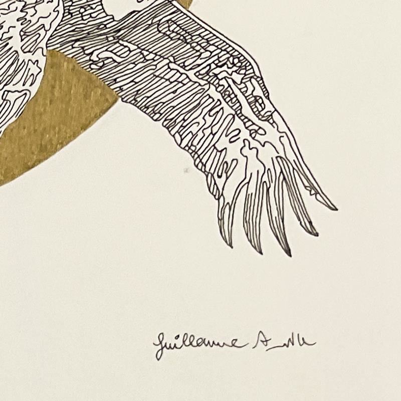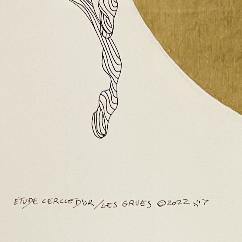 "Etude Cercle D'or" is an original drawing on paper with hand laid gold leaf by Guillaume Azoulay, hand signed by the artist. This piece comes custom framed. Includes Letter of Authenticity. Measures approx. 22" x 20" (frame), 12" x 10" (image).