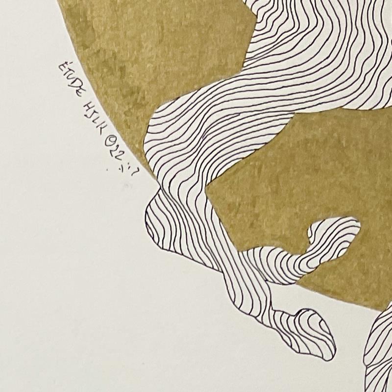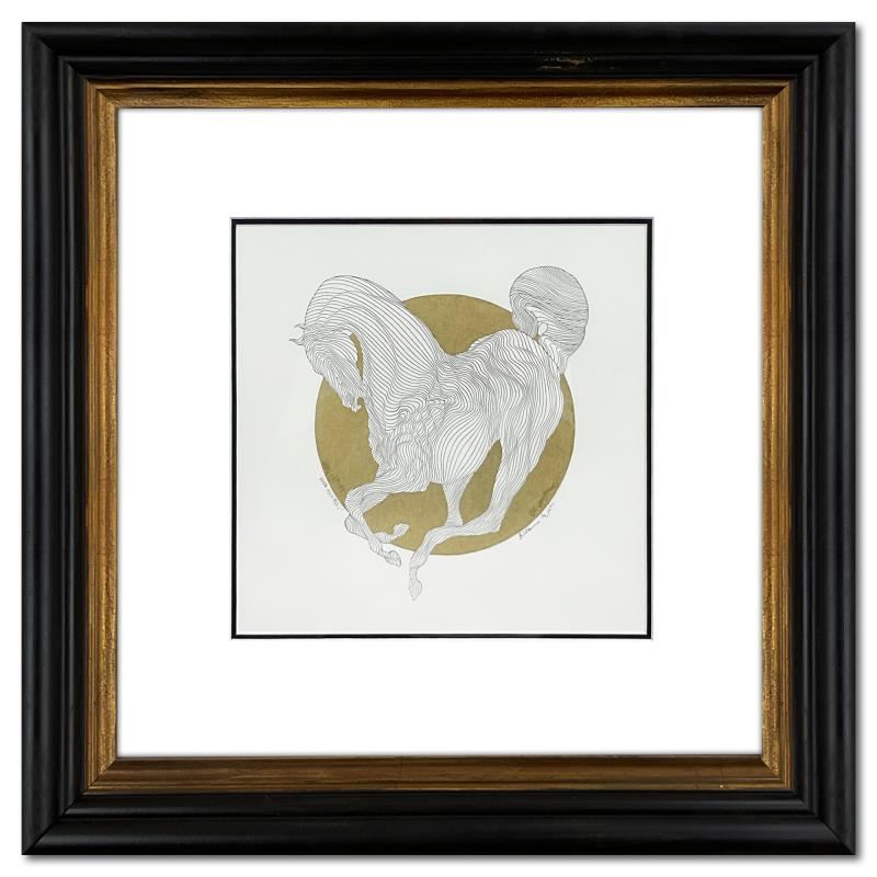 "Etude HJLK" is an original drawing on paper with hand laid gold leaf by Guillaume Azoulay, hand signed by the artist. This piece comes custom framed. Includes Letter of Authenticity. Measures approx. 22" x 22" (frame), 10" x 10" (image).