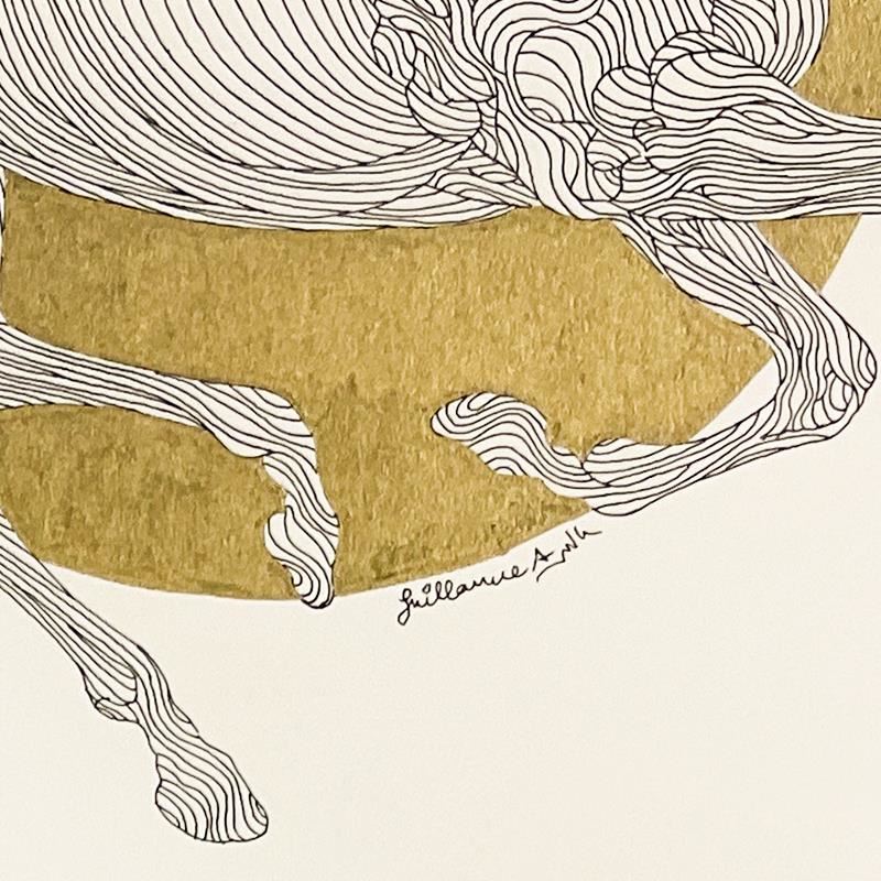 Etude KLKL by Azoulay Original. Please see photos and description for all available information. "Etude KLKL" is an original drawing on paper with hand laid gold leaf by Guillaume Azoulay, hand signed by the artist. This piece comes custom framed. Includes Letter of Authenticity. Measures approx. 22" x 20" (frame), 11" x 9" (image).