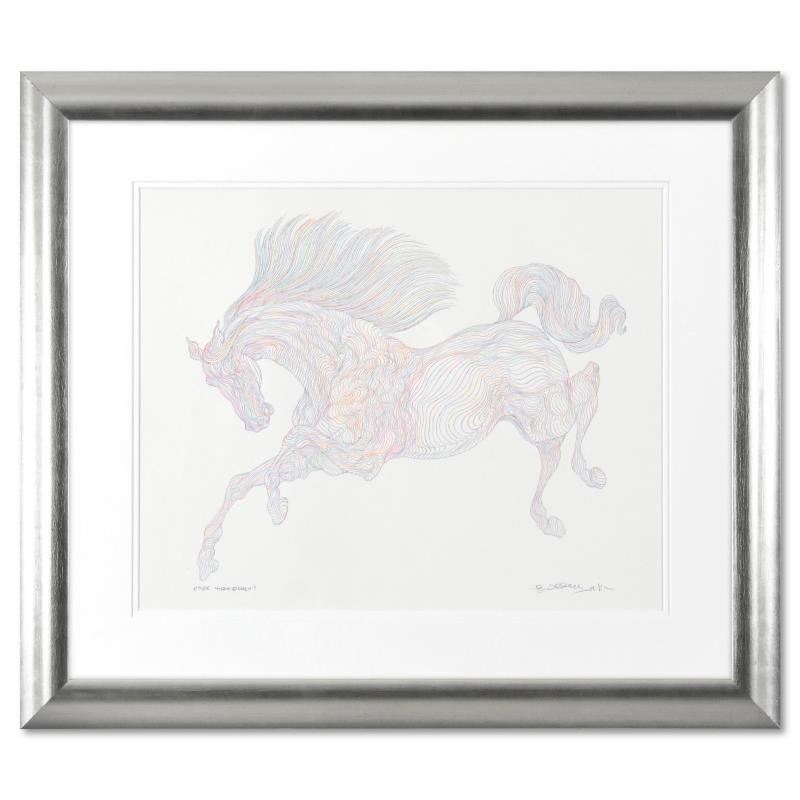 "Etude MMZX" is an original drawing on paper by Guillaume Azoulay, hand signed by the artist. This piece comes custom framed. Includes Letter of Authenticity. Measures approx. 31" x 27" (frame), 18" x 16" (image).