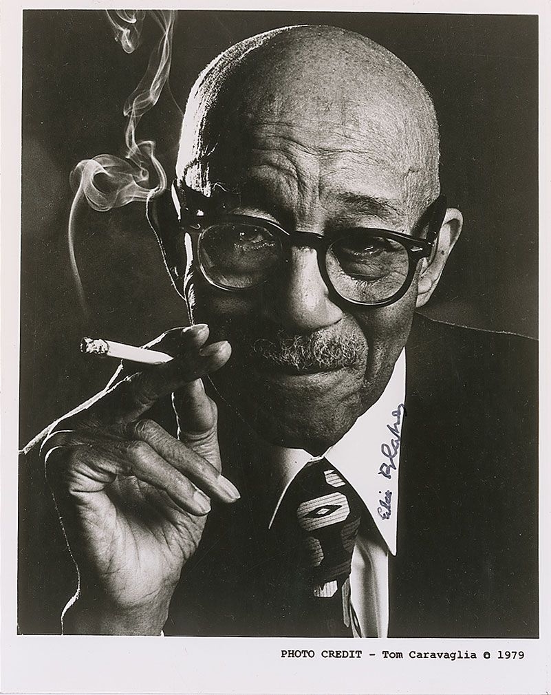 Glossy 8 x 10 publicity photo of Blake smoking a cigarette, signed vertically in black felt tip. In fine condition.