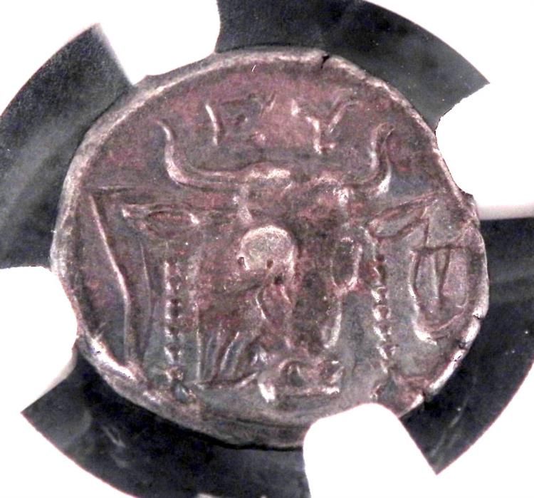 Euboean League Ancient Greek Coin * * * Circa: 304-290 BC * Type: AR Drachm * Weight: 3.80 g * Obverse: Nymph * Reverse: Head and neck of bull with fillet * Grade: Extra Fine * Strike: 4/5 * Surface: 5/5 * Graded by: Numismatic Guaranty Corporation