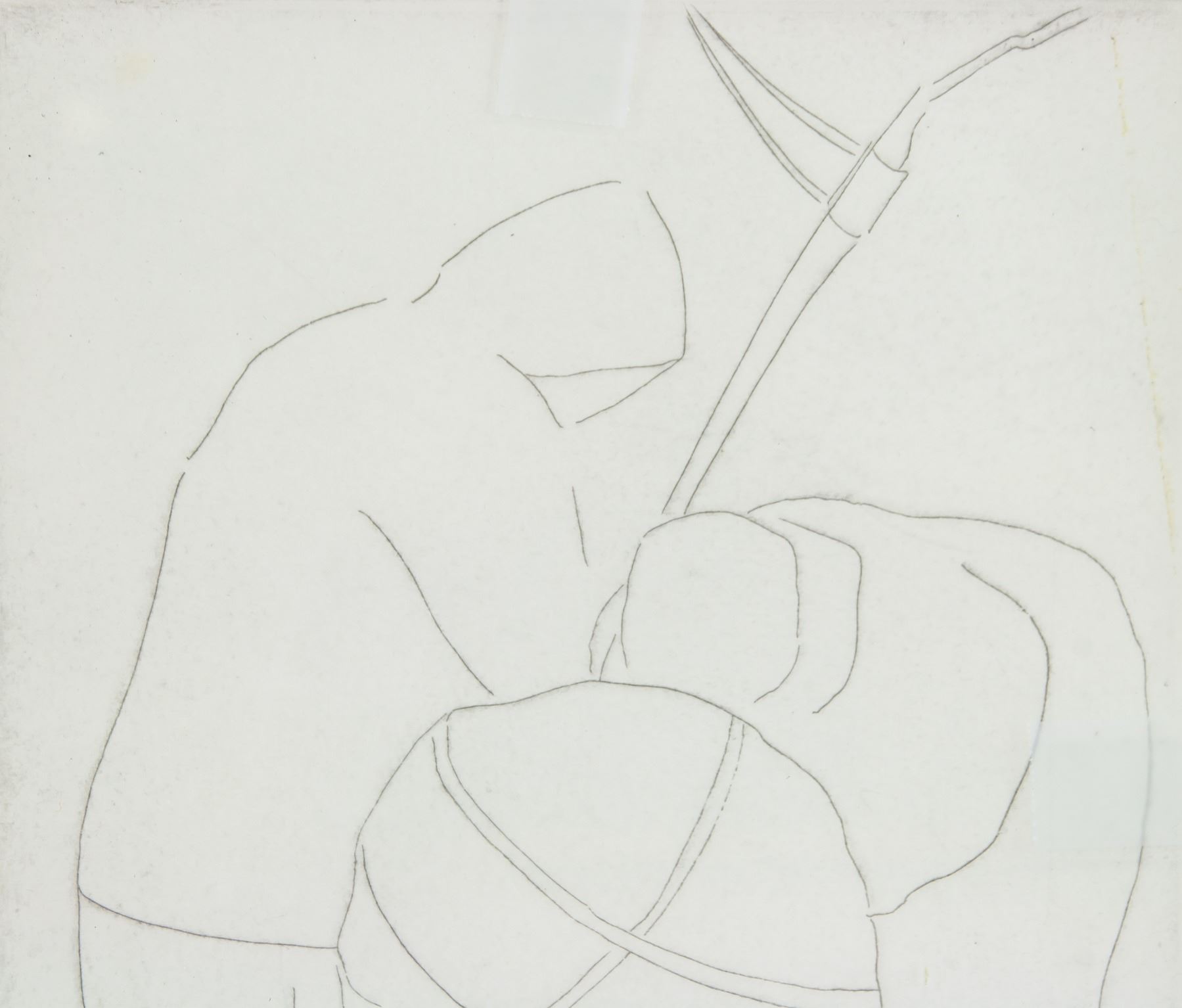 Limited edition lithograph, entitled, "tree planting" and numbered 7/20. Signed Eudice Garmaise (Canadian, 1924-2016) on lower right corner. 9 x 7 in (22.9 x 17.8 cm), tear on middle left edge of lithograph. Social activist, organizer, artist, teacher, always seeking to foster creativity and self- expression in others. Teacher of innovative courses at Dawson College from 1980-1987, initiator and organizer for many years of the Dawson College "Quebec Professional Quebec Artists" exhibition. Active member of Quebec artists' associations and organizer of group exhibitions outside Quebec, in addition to exhibiting in solo and group exhibitions. PROVENANCE: Private collection, Montreal, QC