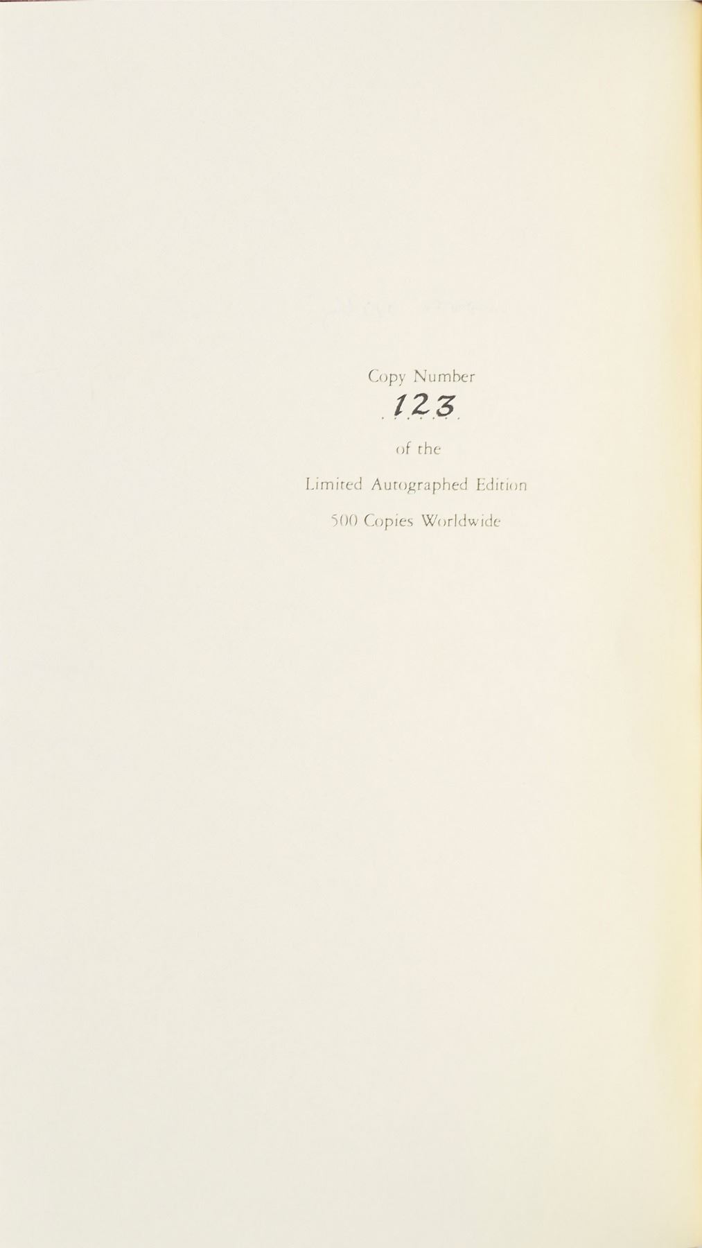 Signed book: The Collected Stories of Eudora Welty. First edition, limited issue, numbered 123/500. NY: Harcourt Brace Jovanovich, 1980. Hardcover with slipcase, 6.5 x 9.5, 622 pages. Signed on the reverse of the colophon in blue ink by Welty. In fine condition.