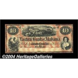 Eufaula, AL - Eastern Bank of Alabama $5 G8a Rosene 68-5, $10 G10b Rosene UNLThis nice pair of remainders represents the two different tint colors printed: the $5 is green and the $10 is red. Both are remainders, the $5 grading About Uncirculated and the $10 Choice Crisp Uncirculated. 2 notes <BR><BR><B>Important notice:</B> Heritage usually auctions material at the rate of 200-250 lots per hour. On some occasions eBay Live bid software or the Internet may not be able to keep up with the pace of the auction. We recommend placing a realistic absentee bid now as insurance to avoid disappointment. Occasionally the auctioneer may eliminate or reject an eBay Live bid, and the auctioneer may also reopen a lot after the close of the eBay live bidding (usually because we missed an audience bid), and may reject your bid even if it shows you as the winning bidder. By bidding via eBay Live, you agree that Heritage may award the lot to another bidder at its sole discretion under the circumstances described above or any other reasonable circumstances. Since eBay bids are not shown to us until we open the lot on the floor, we treat those bids just like floor bids. In most cases the floor responds before the eBay bid is presented to us, due to Internet lag time, so for consistency we have made it a policy that floor bids are always considered first over tie eBay live bids. Also please note that all Heritage lots purchased through eBay Live carry a 20% Buyer's Premium. Please make sure you read the Terms and Conditions before you bid. <BR><BR><B>IMPORTANT ANNOUNCEMENT ABOUT RESERVES:</B> Heritage now divulges all reserves on its web site 7 days before every auction. If you want to know whether the reserve on this lot has been met, and if not, what the reserve amount is, please visit this lot page on the HeritageCoin.com web site, or email: bid@HeritageGalleries.com