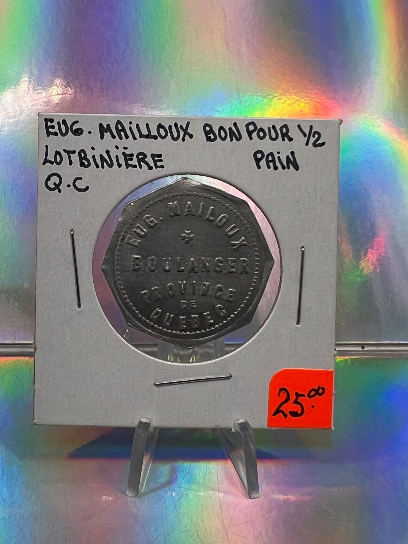 Eug. Mailloux Lotbinière QC, Bon pour 1/2 pain token 1