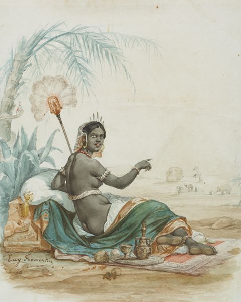 Eugène Frementin (French, 1820-1876) - NUBIAN WOMAN WITH PYRAMIDS IN THE DISTANCE, EGYPT