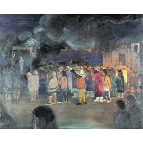 8147 Eugene Dobos, Oil on Canvas "Indian Village Scene" Signed lower right 24" x 30"