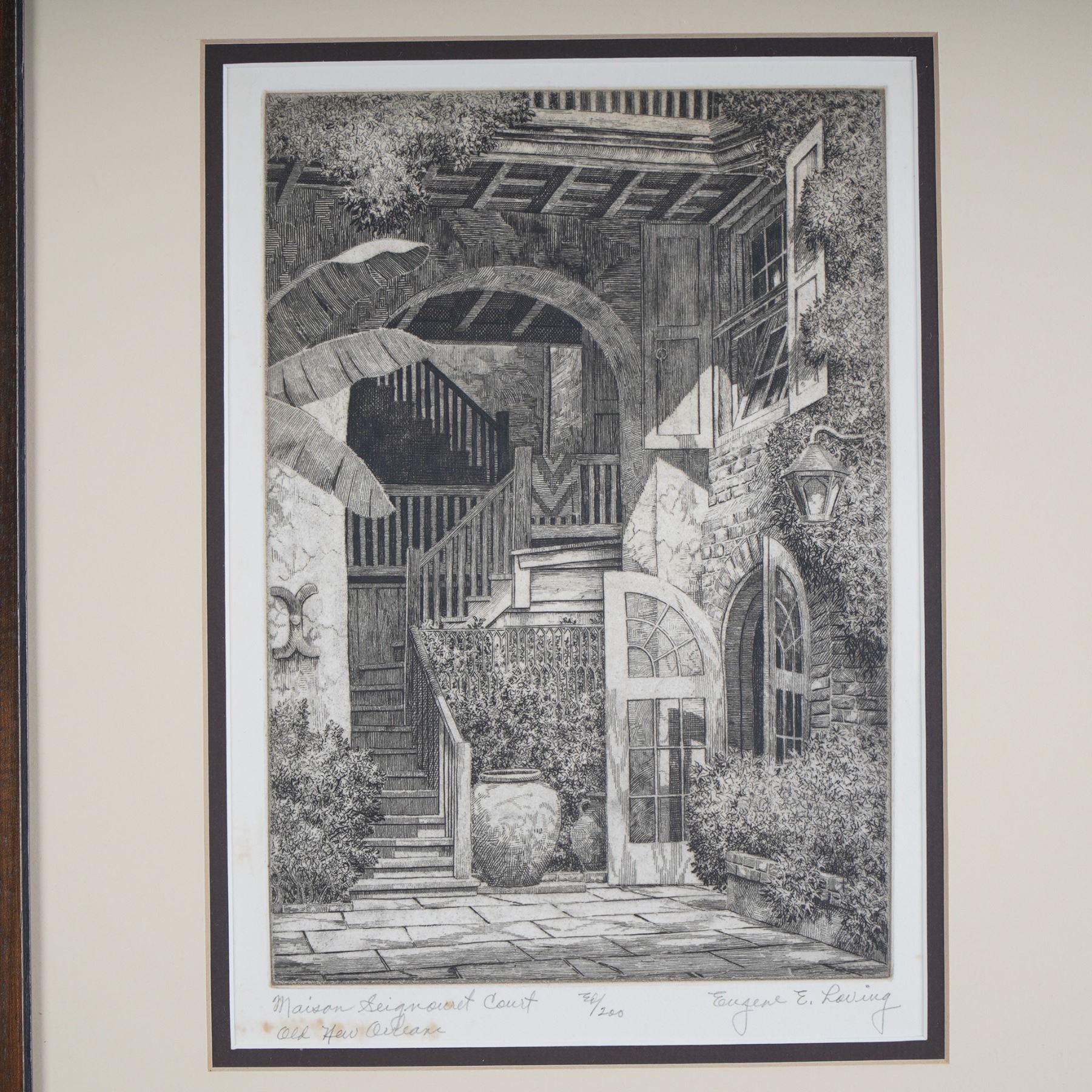Eugene E. Loving Signed Etching on Paper, Maison Seignouret Old New Orleans