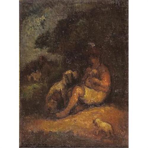 <B>Condition Report:</B> <P>Two spots the size of a quarter inpainted between head of dog and girl and to right of girl's head.</P><BR><BR><b>Shipping:</b> Framed - without Glass, Medium (<a target="_blank" href="http://www.heritageauctions.com/common/shipping.php">view shipping information</a>)