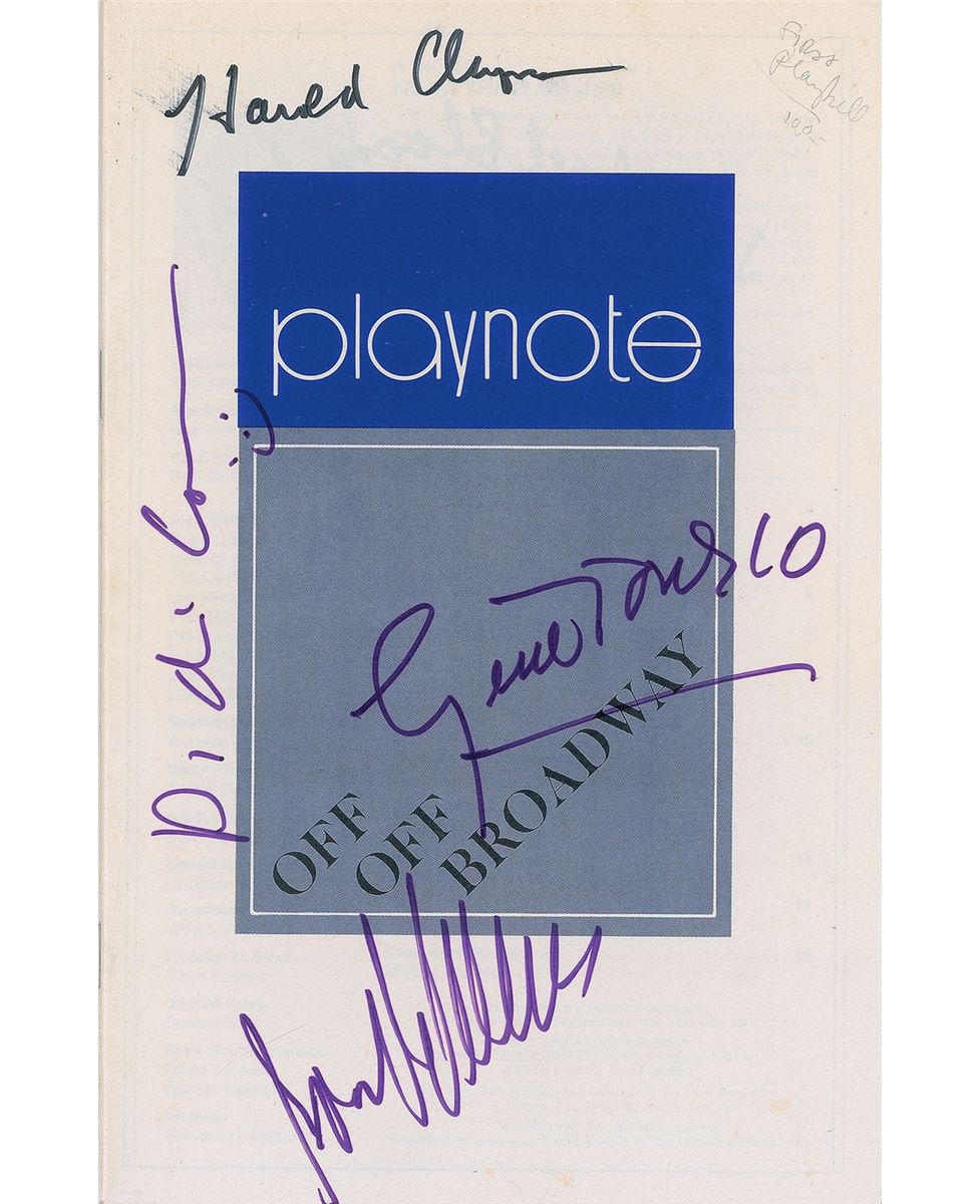 Playnote program for a performance of The Lesson, 5.5 x 8.5, 15 pages, October 1978, signed on the front cover in felt tip by Eugene Ionesco, Didi Conn, Harold Clurman, and Joseph Wiseman. In fine condition.