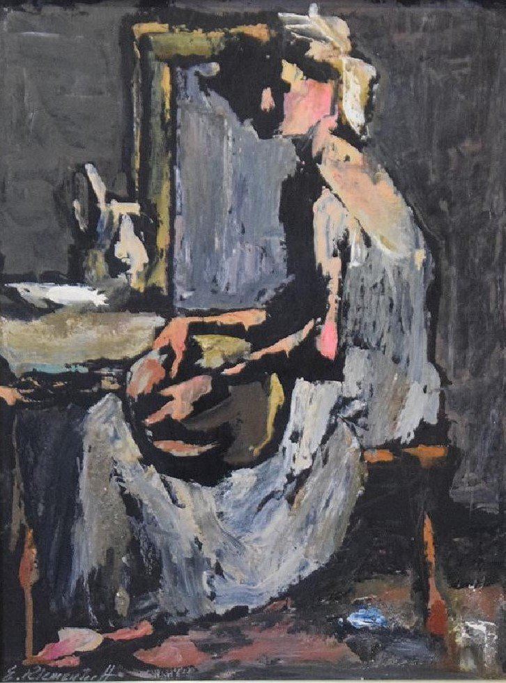 Eugene Klementieff (Russian 20th century) oil on board, seated lady in Interior, 13 x 10 inches.
