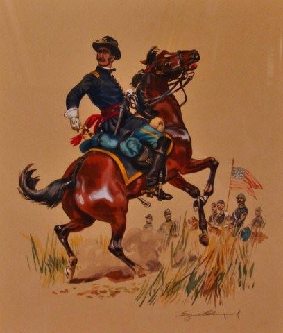Cavalry man on horseback, 16" x 14", signed lower right, -562936-D