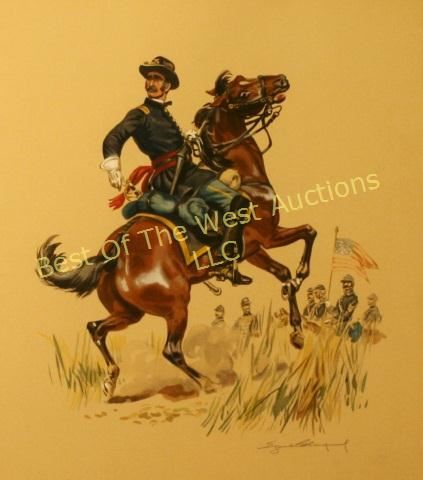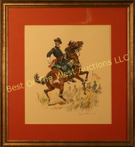 Best of the West Auctions highly recommends a high speed Internet connection to participate live online. Best of the West Auctions will not be held responsible for delayed bidding resulting in your bid being placed at two or more increments after you clicked "Bid Now." Please Note: All bidders and others participating auction agree that they have read and fully understand these terms and agree to be bound thereby. Identification: All bidders are required to fill out the Icollectorlive.com Bidder Approval form. We require a credit card number on file to qualify online bidders. Shipping: Buyer agrees to pay all shipping & packing fees as well as any duties & taxes if shipped internationally. Shipping & Packing will be handled by PakMail of Colorado Springs. Once items have been paid for, they will be released for shipping. Bidders will then pay PakMail directly for shipping & packing. You may also arrange to have your items picked up from our Gallery. Addition to or withdrawal from sale: The auction company reserves the right to withdraw from sale any of the items listed or for sale at this auction. Dispute between bidders: If any dispute arises between two or more bidders, the auctioneer may decide the same or may immediately put the lot up for sale again, and resell to the highest bidder. The decision of the auctioneer shall be final and absolute. In the event of an operational error resulting a dispute between an Internet sale and a live floor bidder, the live floor bidder will take precedence and become the high bidder. The live auction floor bidders have the ability to breakdown the increment; online software does not permit online bidders to do the same. Please review the increments prior to the auction. Reserve: In accordance with state law, we announce all items have a reserve of at least one dollar. The auction company reserves the right to reject any and all bids. The decision of the auctioneer shall be final and absolute. Some items of property may be offered subject to a "reserve" or confidential minimum price below which the item will not be sold. In such instances the auctioneer may implement the reserve by bidding on behalf of the consignor, house, owner or designated bidder. Condition of items sold: The auction company shall not be responsible for the correct description, authenticity, genuineness of, or defect in any lot, and makes no warranty in connection therewith. No allowance will be made or sale set aside on account of any incorrectness, error in cataloging, or any imperfection not noted. All items are sold "as is – where is" and without recourse. All items are available for your examination prior to bidding. Written and oral descriptions are our opinions and should in no way be construed as a guarantee of any kind as to authenticity, age, condition, materials or any other feature of items being sold. We attempt to catalog every lot correctly and will attempt to point out any defects but will not be responsible or liable for the correctness of the catalog or other descriptions of the lot. We recommend prospective bidders examine all items in which they have an interest. By placing a bid, either in person, by phone, absentee or via the Internet, you signify that you have examined the items as fully as you desire to or that you have chosen not to examine them. If you require absolute certainty in all areas of authenticity, and the results of your evaluation leave uncertainty in your mind, we recommend you have an expert examine the lot for you or do not bid on the item in question. Compliance with term of sale: In default payment of bills in full within the time herein specified, the auction company, in addition to all other remedies allowed by law, may retain all monies received as deposit or otherwise as liquidated damages. Lots not paid for and removed within the time specified herein may be resold at public or private sale without further notice, and deficiency, together will all expenses and charges of resale, will be charged to the defaulting purchaser. Additional terms and conditions: Any additional terms or conditions of sale may be announced prior to auction. Removal: Removal shall be at the expense, liability, and risk of the purchaser. Purchases will be delivered only on presentation of paid bill. Auction Company shall not be responsible for goods not removed within the time specified, and shall have the option of removing and storing at the expense and risk of the purchaser any article purchased, but not paid for and removed within the specified time. Non-delivery and responsibility: Auction Company shall not, in any event, be liable for any matter or thing, including non-delivery to any purchaser of lot, other than for the return to the purchaser of the deposit or sum paid on said lot, should the purchaser be entitled to it. All sales are final: When the auctioneer says "sold" title immediately passes to the successful bidder. No claims will be allowed after goods are removed from premises. Personal and property risk: Persons attending during exhibition, sale or removal of goods assume all risk of or loss to person and property and specifically release the auctioneer, auction company and/or its' agents from liability therefore. Neither the auctioneer nor his principal shall be liable by reason of any defect in or condition of the premises on which the sale is held. Agency: The auction company and auctioneer are acting as agent only and are not responsible for acts of their principals. Default on payment: Invoices will be sent from Icollector after each session. Payment must be received within 7 days of the auction end. If unpaid after one week, the buyer agrees to & allows Best of the West Auctions to apply the charges to the credit card used at the time of registration. Should any purchaser/bidder fail to pay all sums due and owing to auctioneer at time of sale, then purchaser/bidder agrees to pay in addition to principal sum owing 1.5% per month intere