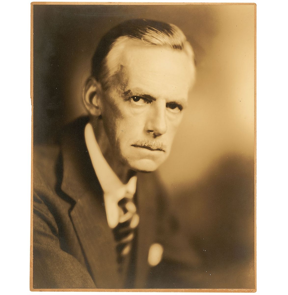 Early 1900s mounted photograph, 10.25 x 13.5, of the famed American author, affixed to its slightly larger original mount. The image is clean though a bit blurry. The back has his name handwritten, plus stains and toning. Otherwise light wear. A striking and interesting photo, rare due to its large size.