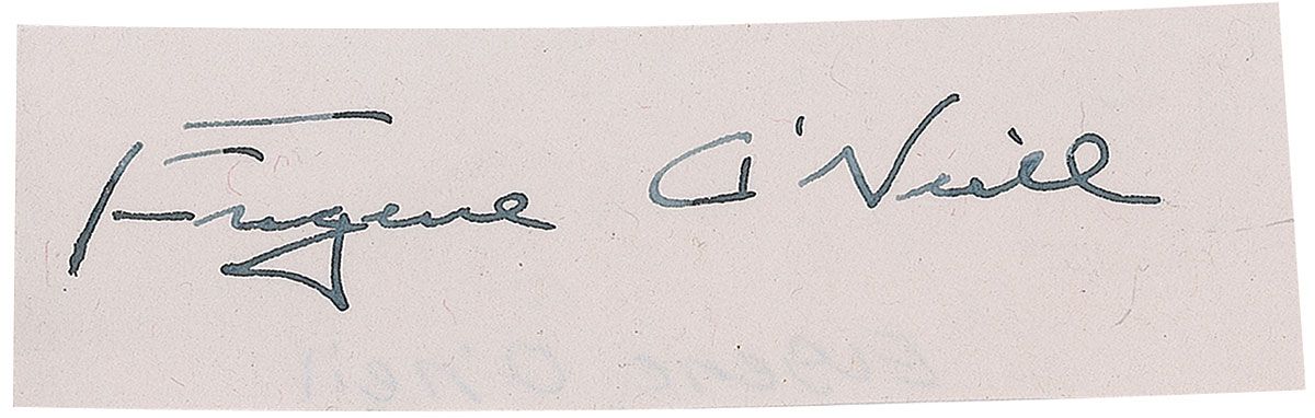 Vintage fountain pen signature, “Eugene O’Neill,” on an off-white 3.75 x 1 clipped slip. In fine condition.