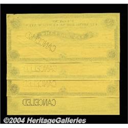 Eugene, OR- Eugene Clearing House $1, $2, $5, $10 Nov. 12, 1907A set of four pieces, each on bright yellow paper with a black overprint and each unissued and cancelled. All four pieces are Uncirculated. These are very scarce notes and this set has not been offered since it appeared in NASCA' s T.James Clarke sale in June of 1978. <BR><BR><B>Important notice:</B> Heritage usually auctions material at the rate of 200-250 lots per hour. On some occasions eBay Live bid software or the Internet may not be able to keep up with the pace of the auction. We recommend placing a realistic absentee bid now as insurance to avoid disappointment. Occasionally the auctioneer may eliminate or reject an eBay Live bid, and the auctioneer may also reopen a lot after the close of the eBay live bidding (usually because we missed an audience bid), and may reject your bid even if it shows you as the winning bidder. By bidding via eBay Live, you agree that Heritage may award the lot to another bidder at its sole discretion under the circumstances described above or any other reasonable circumstances. Since eBay bids are not shown to us until we open the lot on the floor, we treat those bids just like floor bids. In most cases the floor responds before the eBay bid is presented to us, due to Internet lag time, so for consistency we have made it a policy that floor bids are always considered first over tie eBay live bids. Also please note that all Heritage lots purchased through eBay Live carry a 20% Buyer's Premium. Please make sure you read the Terms and Conditions before you bid. <BR><BR><B>IMPORTANT ANNOUNCEMENT ABOUT RESERVES:</B> Heritage now divulges all reserves on its web site 7 days before every auction. If you want to know whether the reserve on this lot has been met, and if not, what the reserve amount is, please visit this lot page on the HeritageCoin.com web site, or email: bid@HeritageGalleries.com