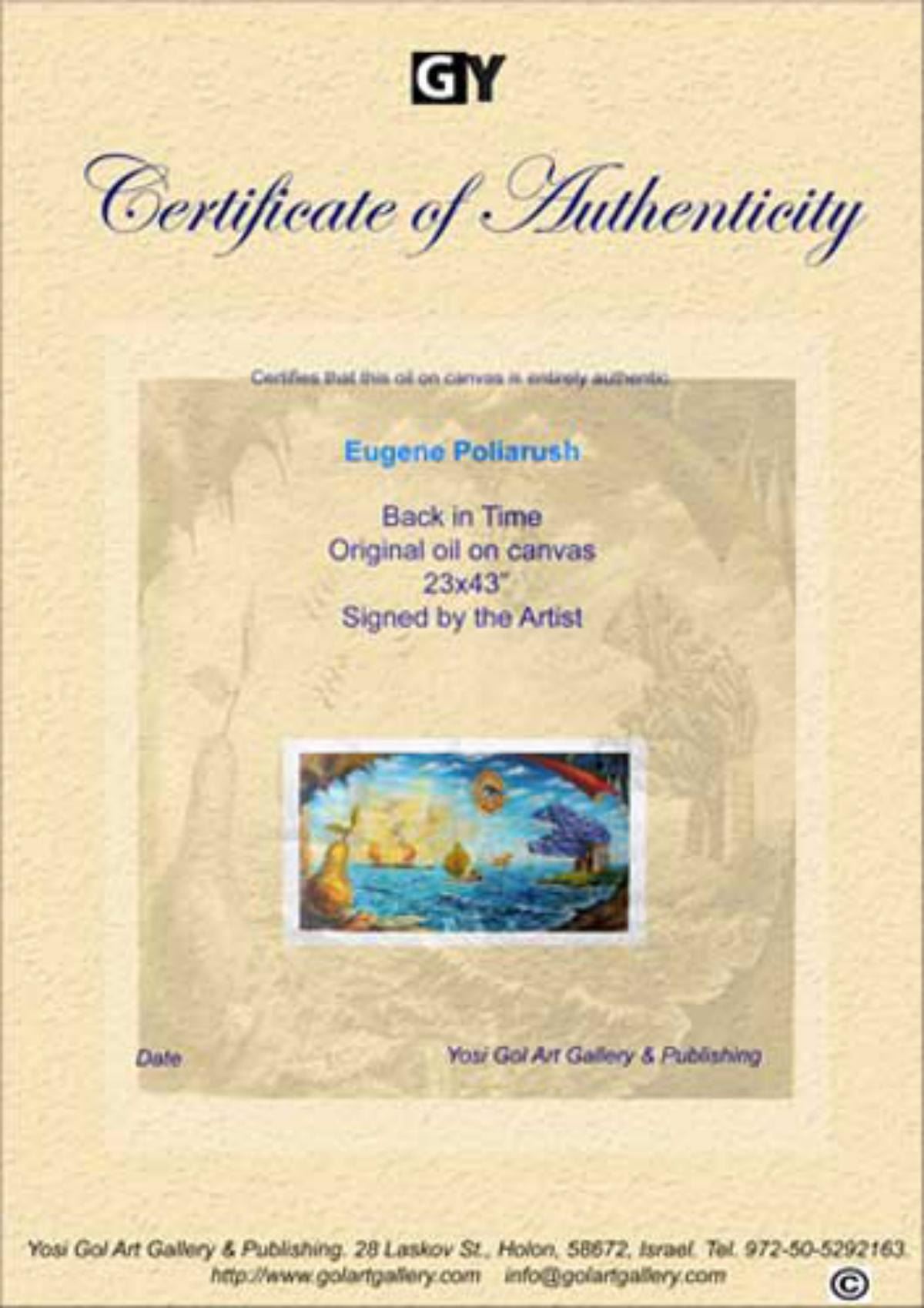 Artist: Eugene Poliarush. Medium: Original Oil on Canvas. Title: Back In Time. Size (Unframed): 23" x 43". Certificate of Authenticity: From the publisher. Reference# 10168.
