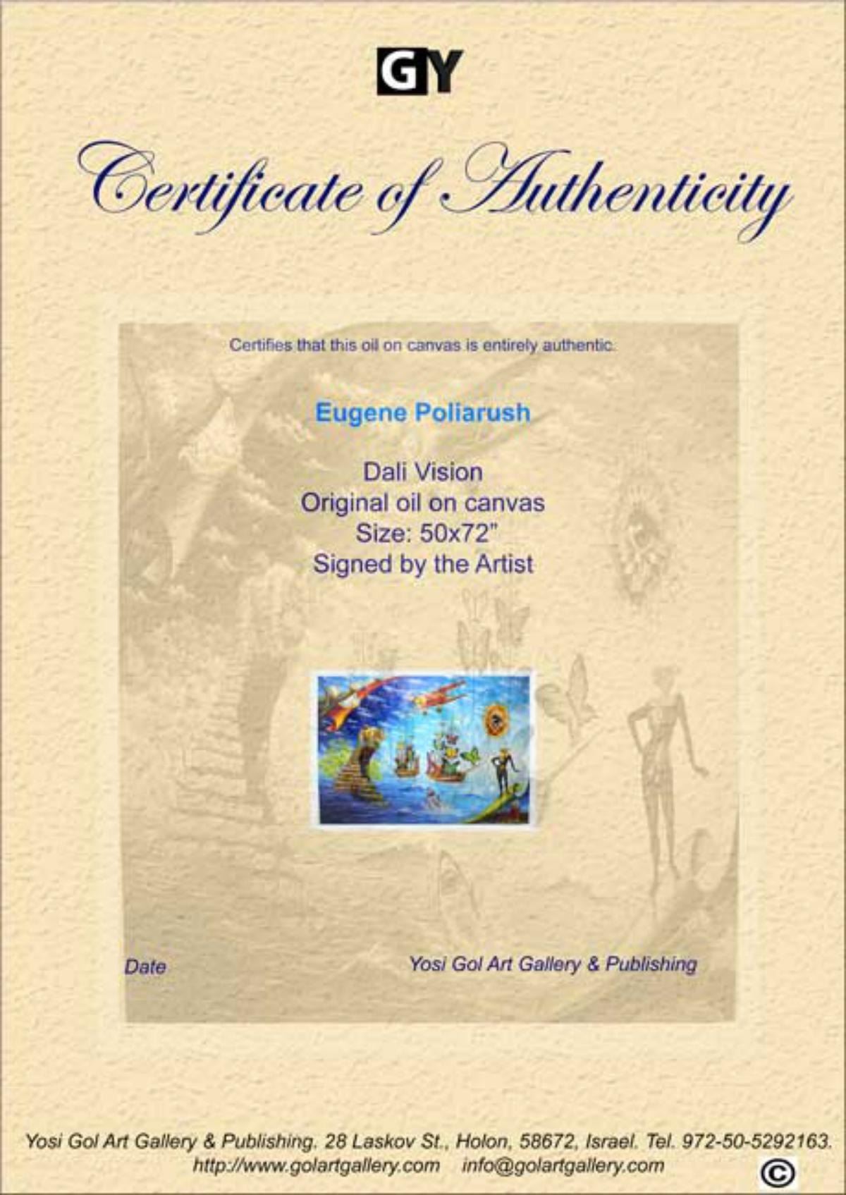 Artist: Eugene Poliarush. Medium: Original Oil on Canvas. Title: Dali Vision. Size (Unframed): 50" x 72". Certificate of Authenticity: From the publisher. Reference# 10349.
