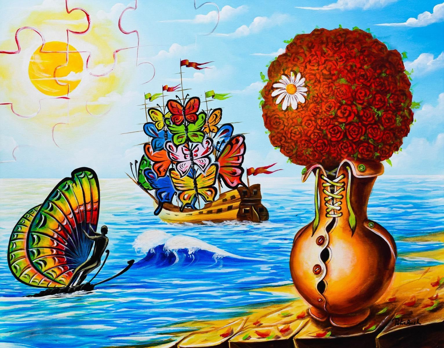Artist: Eugene Poliarush. Medium: Original Oil on Canvas. Title: Leaving the Island. Size (Unframed): 24" x 30". Size (Framed): 30" x 36". Certificate of Authenticity: From the publisher. Additional: Custom Framed. Reference# 13734.