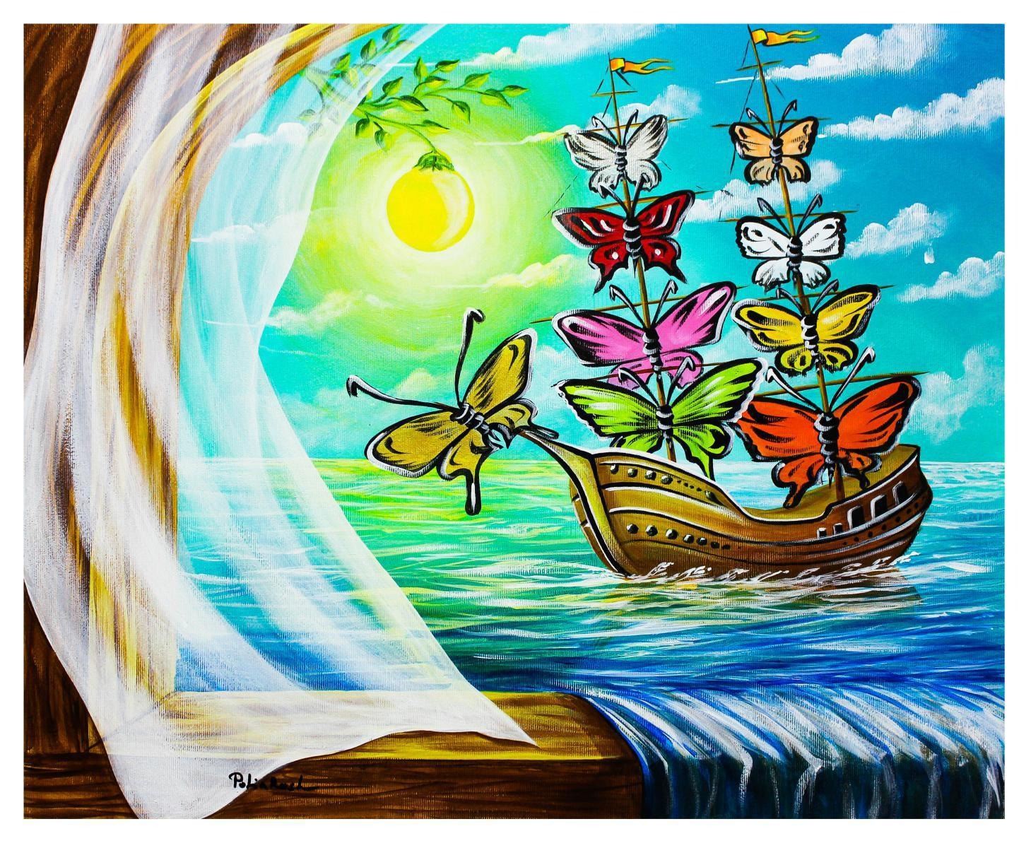 Artist: Eugene Poliarush. Medium: Original Oil on Canvas. Title: Sailboat to Europe. Size (Unframed): 16" x 20". Certificate of Authenticity: From the publisher. Reference# 13560.