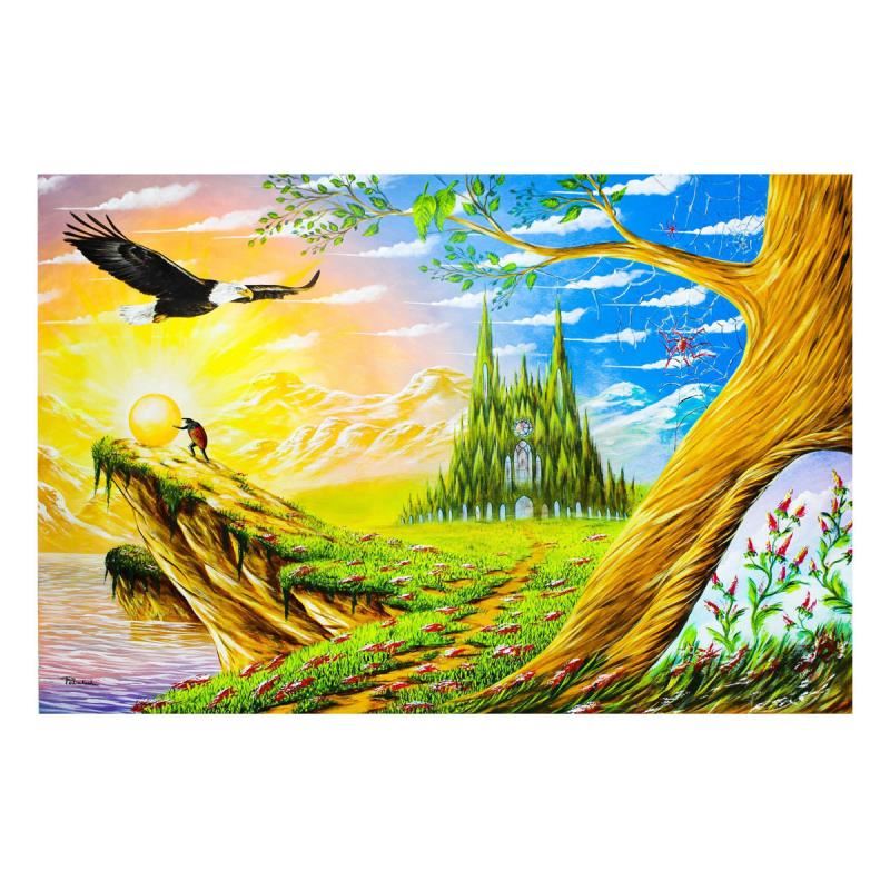"Welcome To Heaven" is an original painting oil on canvas by Eugene Poliarush. Hand signed by the artist this piece comes with a letter of authenticity. Measures approximately 40" x 60". This item requires special handling and may have a longer than usual turnaround.