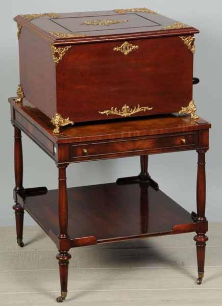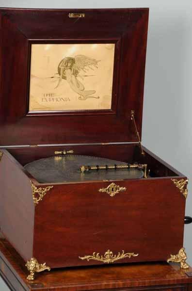 Description Dore Eseutchens. Mahogany case with base. Working. Condition (Good). Size 15".