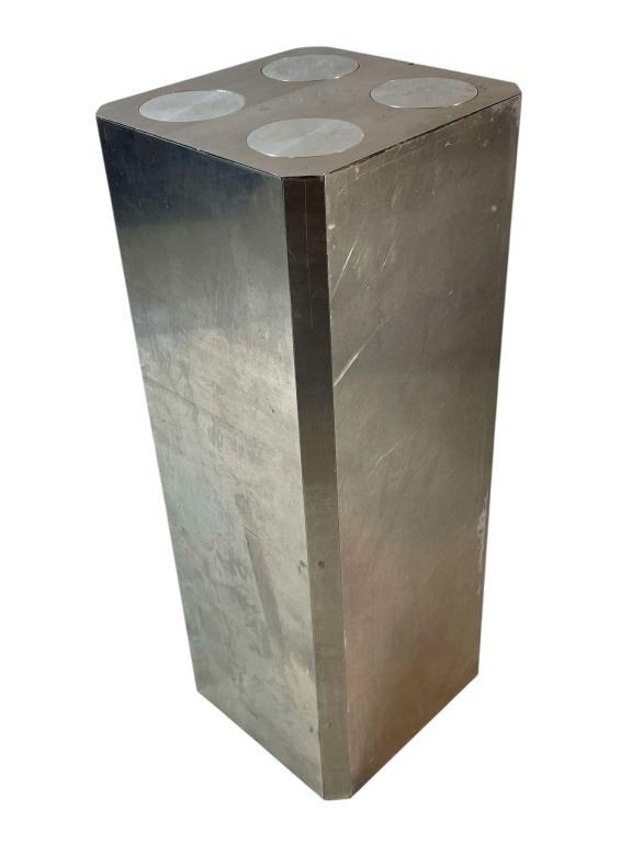 Original machined aluminum containment unit used in the science fiction television series 'Eureka' (2006-2012), set in the fictional town of Eureka, Oregon. Most residents of Eureka are scientific geniuses who work for Global Dynamics, an advanced research facility responsible for the development of nearly all major technological breakthroughs since its inception.