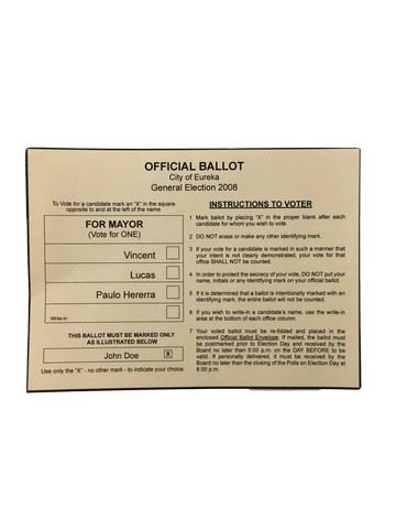 City of Eureka screen used General Election Ballot 2008. (6x4).