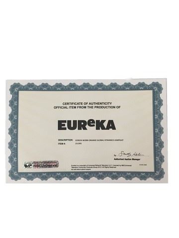 Screen worn, bright orange with yellow reflective stripes "Global Dynamics" jumpsuit, worn in multiple episodes, Certificate of authenticity included.