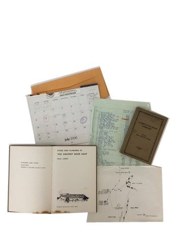 Screen used, from season 2, episode 6, scene 16, roll top desk drawer, includes books, a map, calender, envelopes, and an inventory log sheet. (17x11)
