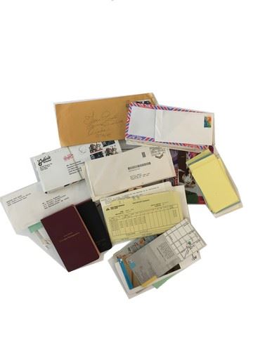 Screen used, from season 2, episode 6, scene 16, roll top left desk shelf. Including mail, notes documents, books and various paper work. (17x11).
