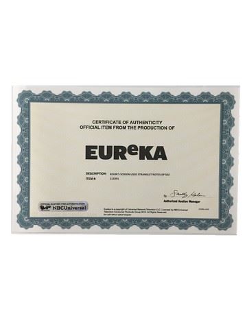 Screen used, stranglet notes, includes pictures, notes, mono circut notes, diagrams, and formulas. Certificate of Authenticity included.(11x9)
