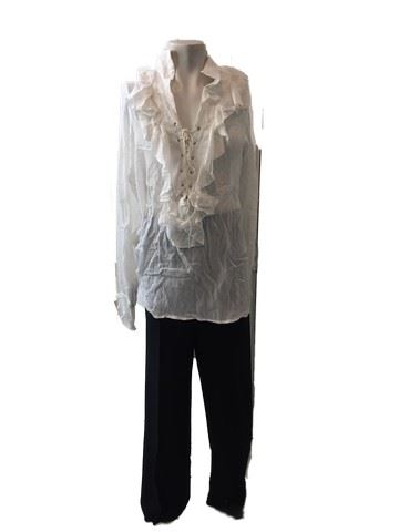 Nathan Stark (Ed Quinn) screen worn, hero, cream "Venus & Mars" pirate style costume shirt with lace up the front detail (sm), black costume style pants with stirrups sewn on the bottom of the pant leg. Certificate of authenticity included. Worn in scene 206.